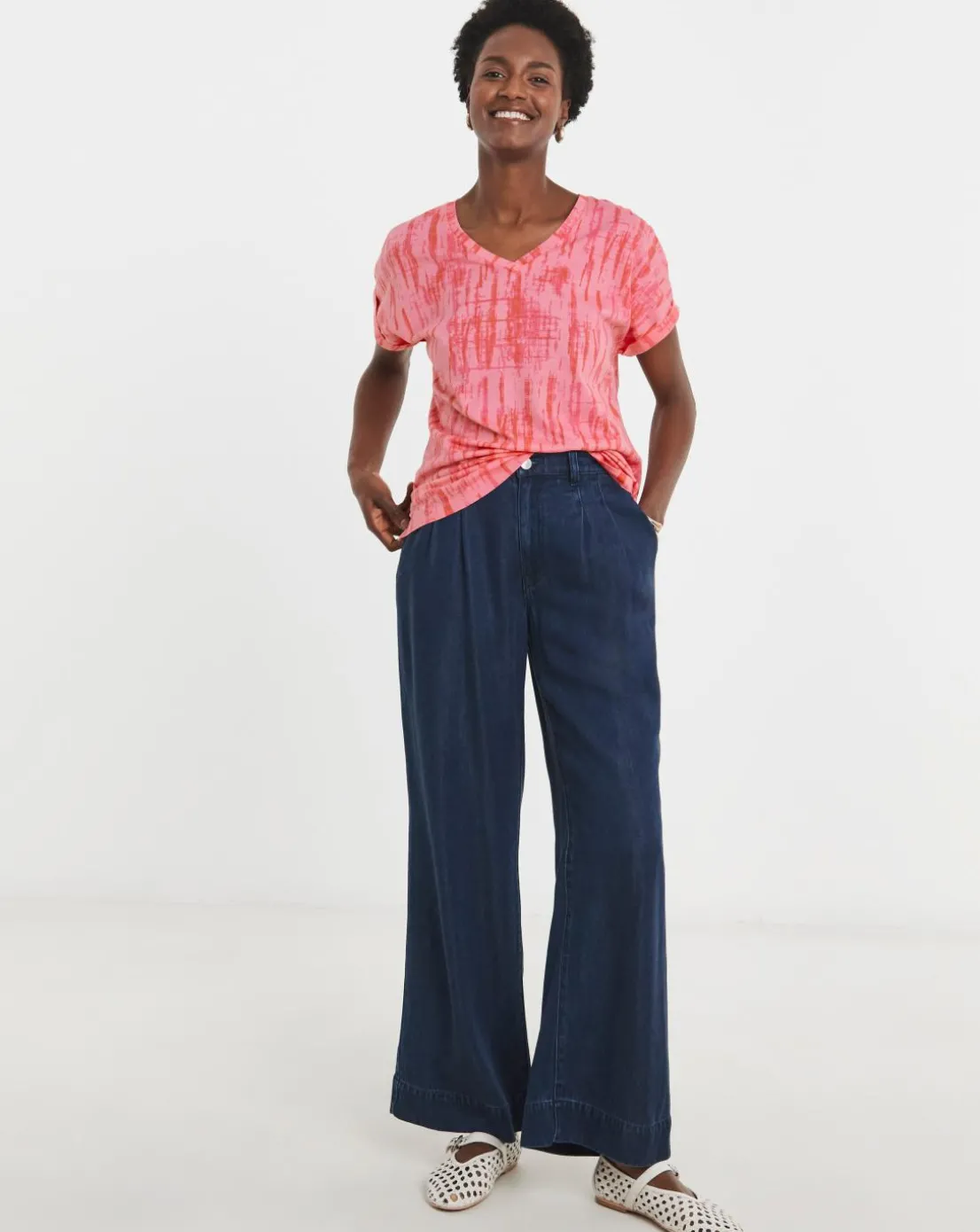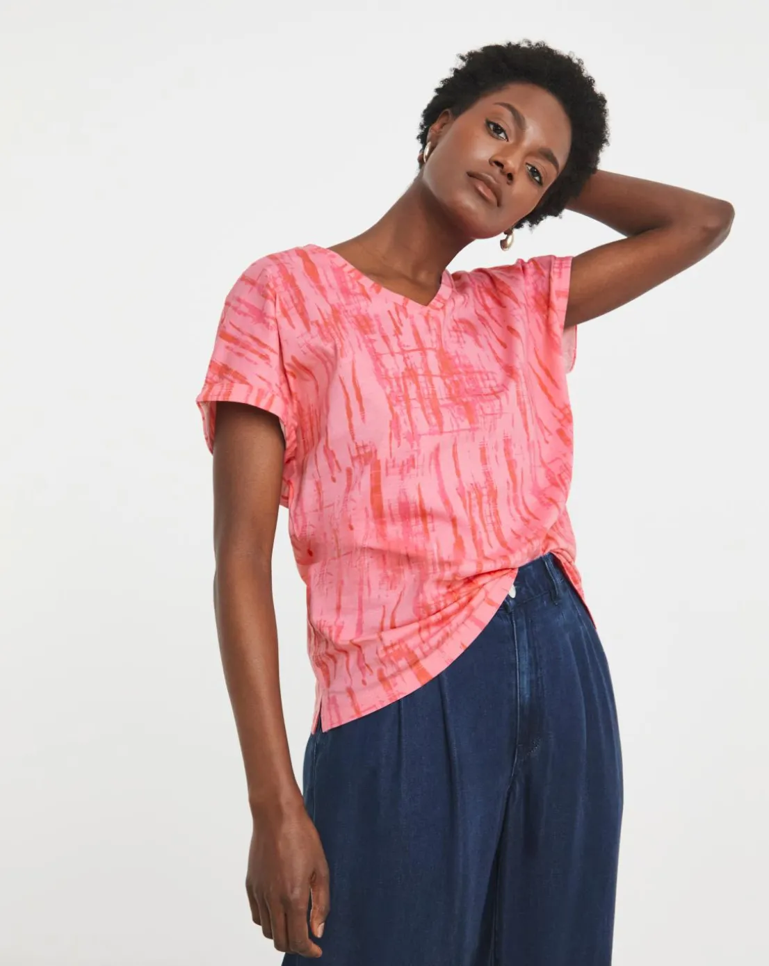 The v-neck printed t-shirt is a must have in ur wardrobe. Pair with jeans and flats for an everyday look.