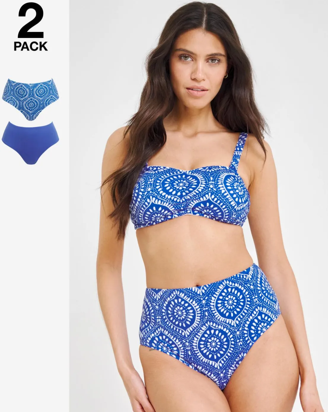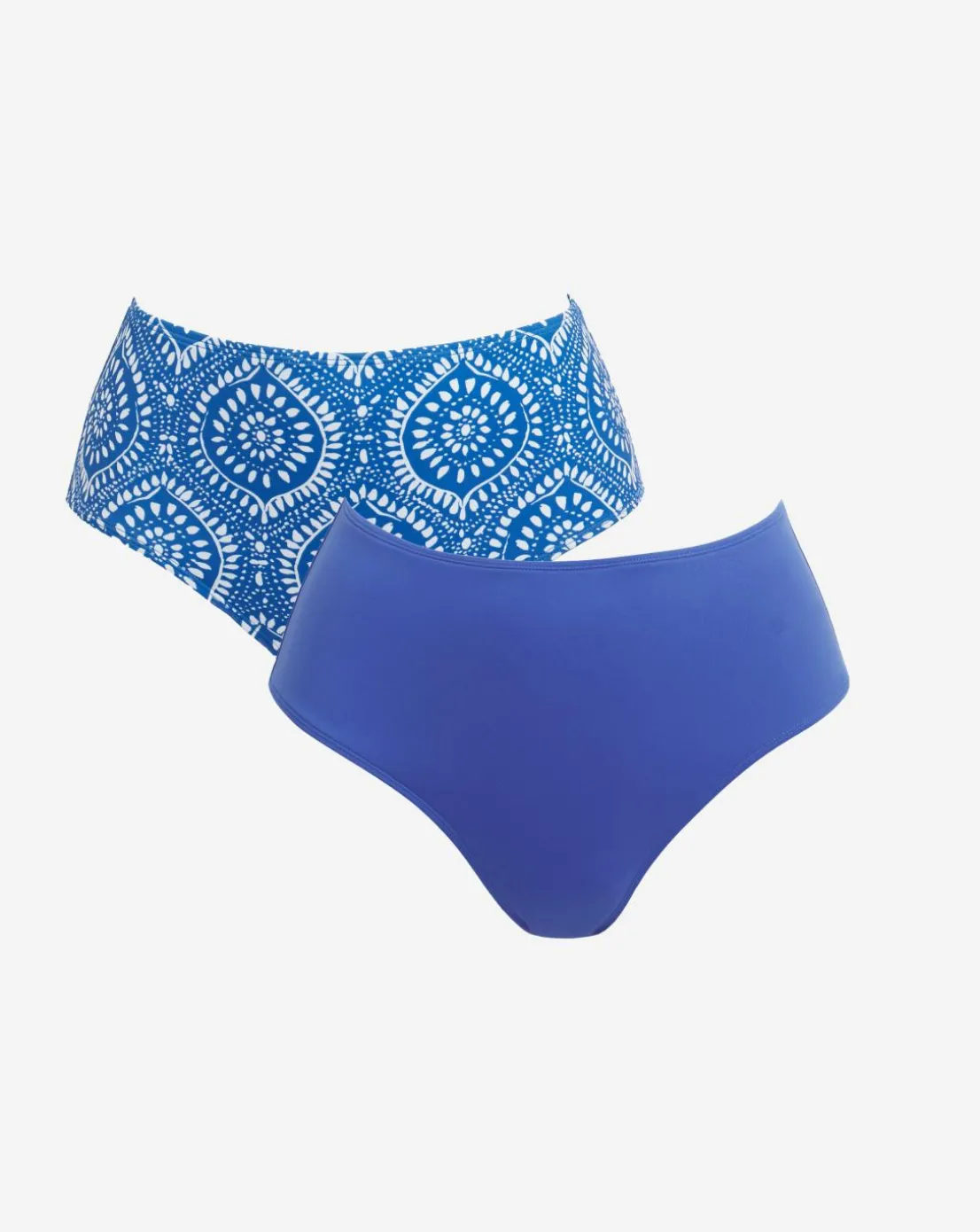 From our new value collection, this 2 pack of bikini briefs allow you to mix and match, giving you multiple options on your next holiday. In a tile print and plain blue with high waist detailing for maximum comfort.