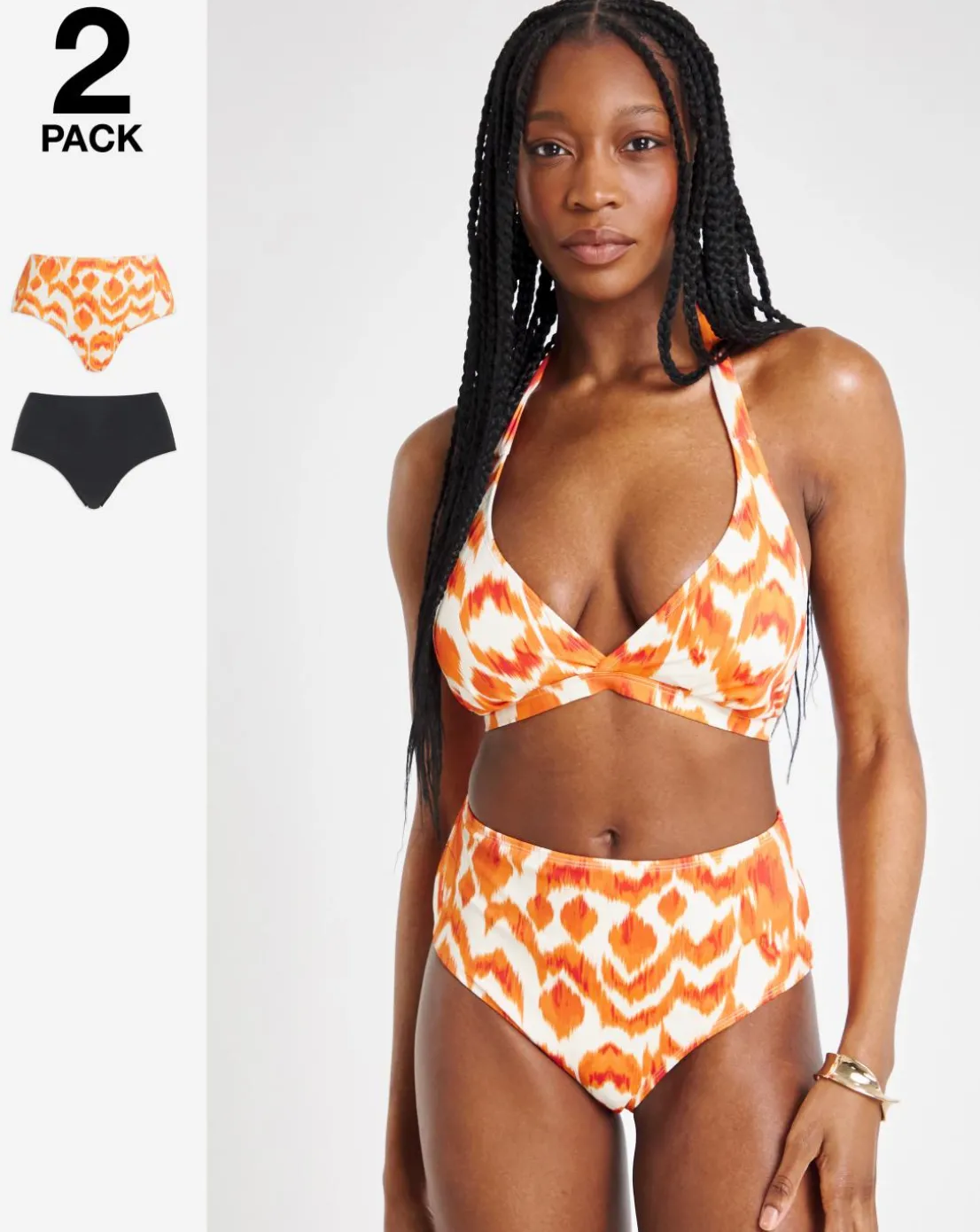 From our new value collection, this 2 pack of bikini briefs allow you to mix and match, giving you multiple options on your next holiday. In a tie dye and black with high waist detailing for maximum comfort.
