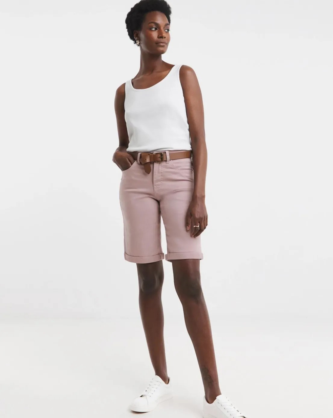 New and improved fit. Our 24/7 knee short is the perfect everyday short that has been reworked for the season. Now in blush and in our stretch denim fabric, this knee short can be worn casually and comfortably throughout the day and dressed up to take you into the night. Also features hidden back elastication and clever tummy tuck pocketing detail for ultimate comfort and fit.