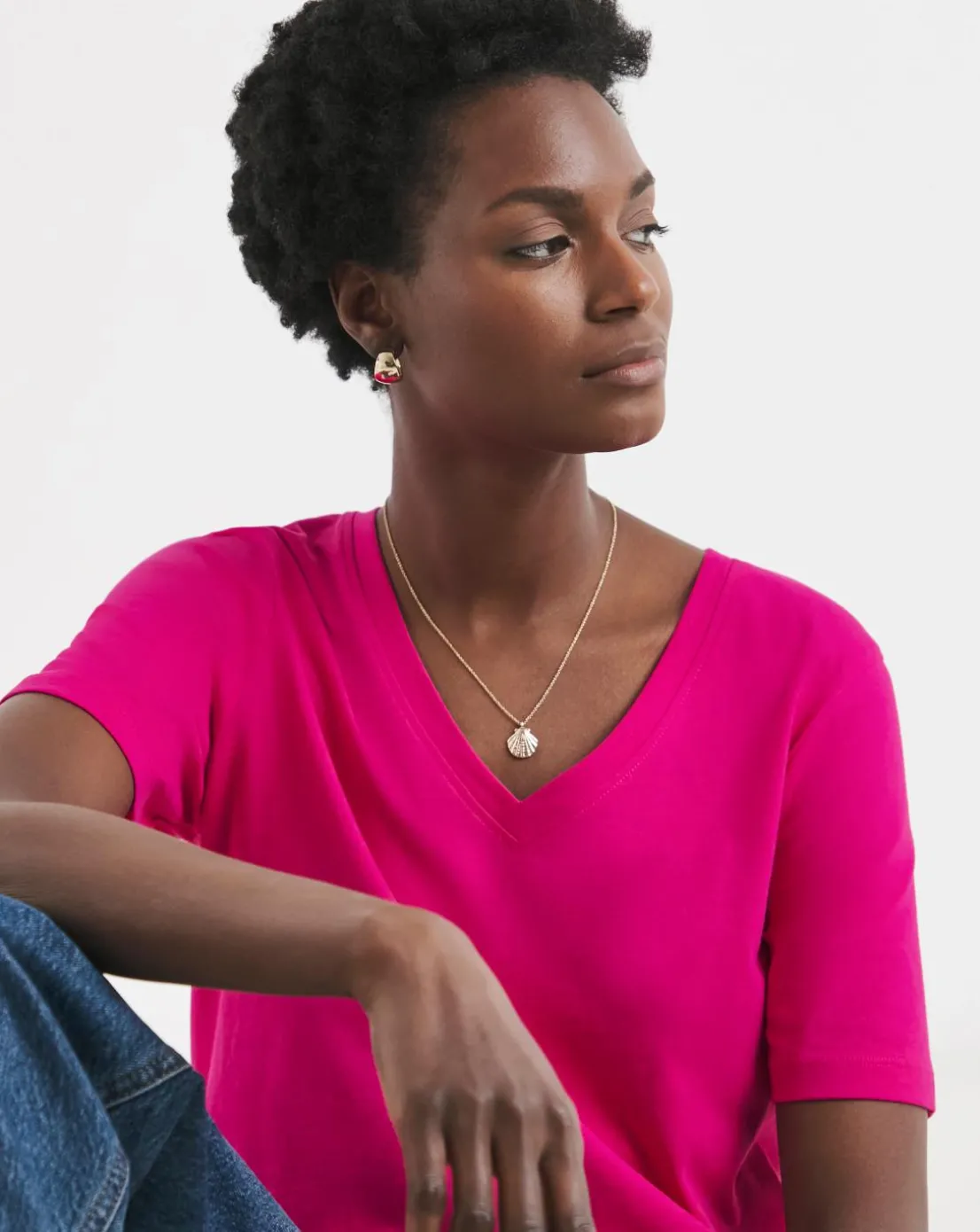 Our great value 3 pack v-neck t-shirts are back and have been redesigned in a pink, grey and navy colourway. Simply pair with jeans and flats for a casual day outfit.