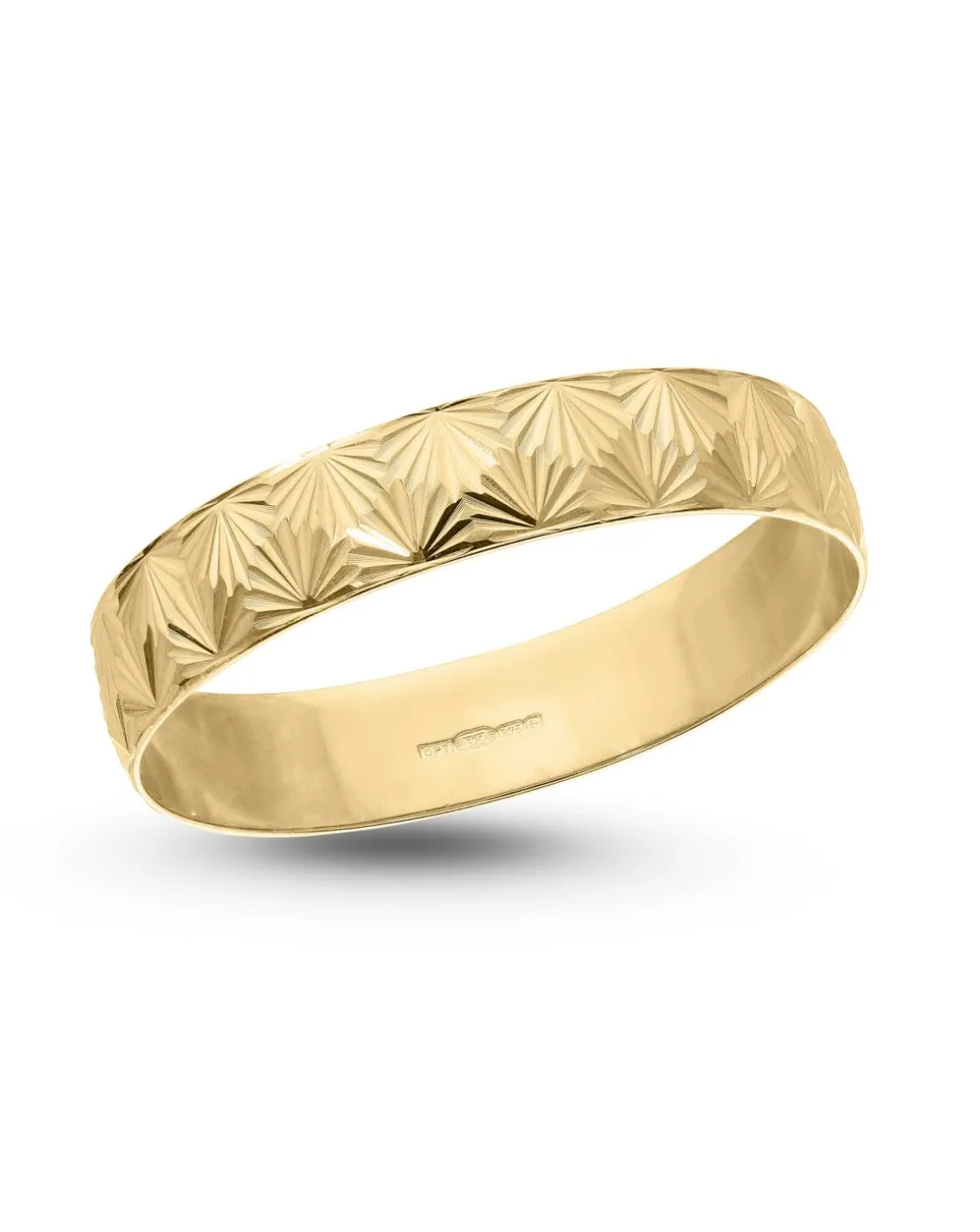- 9 Carat Gold Diamond Cut Fan Design D Shape Wedding Ring