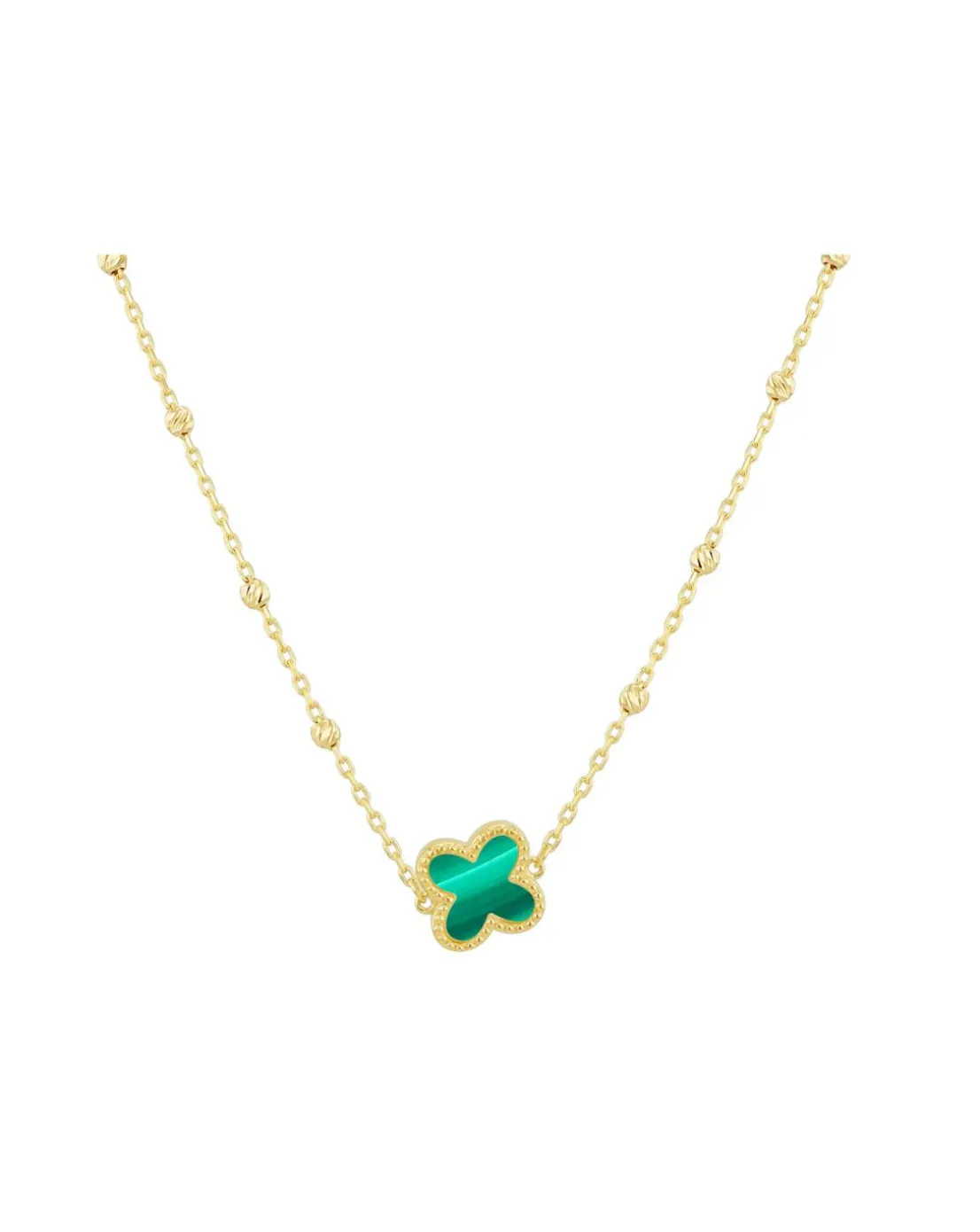 - 9ct Yellow Gold Malachite Clover Necklace