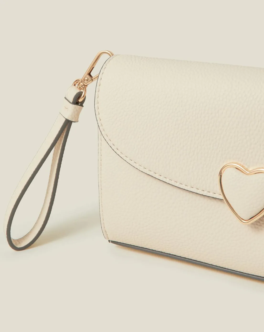 - Love is all around with this clutch bag. Crafted in sumptuous faux leather, unfold the flap fastening to find a main compartment with interior slip pocket. Finished with a detachable wrist strap.