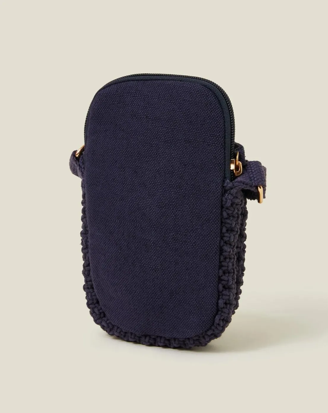 - Mini accessories? We’re hooked. Perfectly sized for your phone (and other small essentials), this bag boasts a decorative macrame finish with a front zip pocket and adjustable strap.