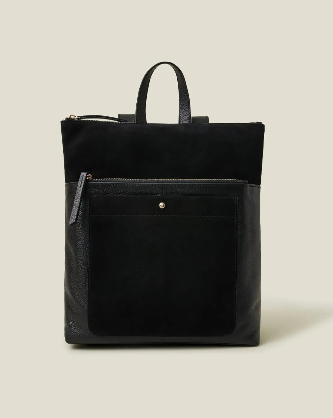 - A chic update to your nine-to-five looks, this backpack is perfect for your commute to work. Crafted of leather with soft suede panels at the front and on the pocket, it fastens with gold-tone zips and has adjustable shoulder straps.