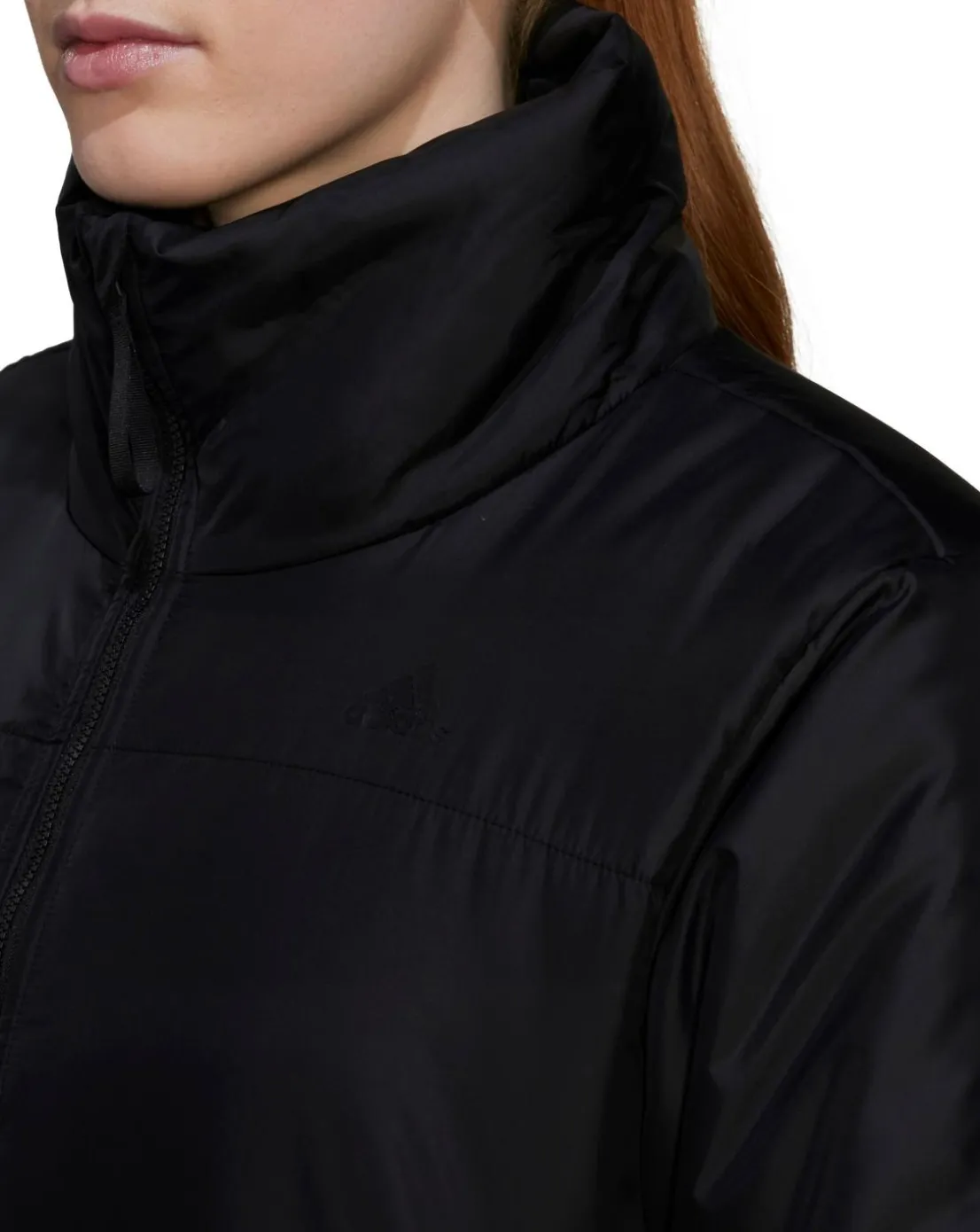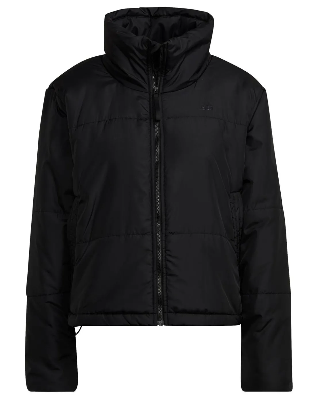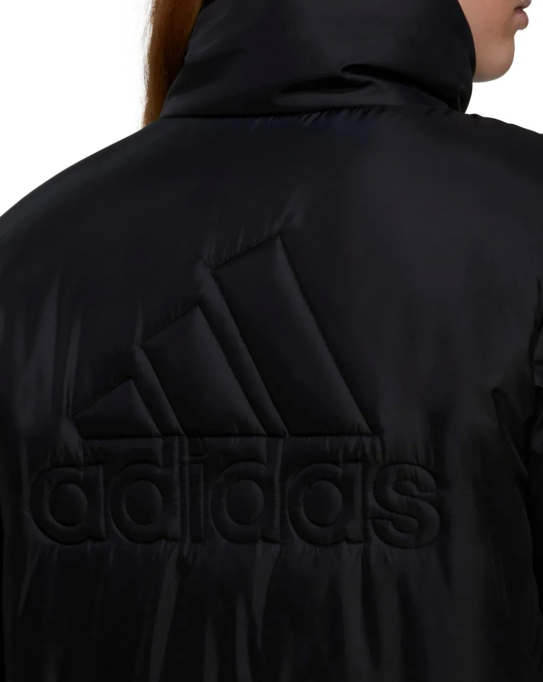 Stay warm without compromising your style. This adidas puffy jacket has a loose, relaxed fit and slightly shorter cut for a modern look that goes with everything. Large baffles and synthetic insulation seal in heat to keep you warm on cold winter days. Elastic cuffs and an adjustable hem seal in heat for a cosy feel on cold days. Zip pockets keep hands warm and your keys or phone within easy reach.