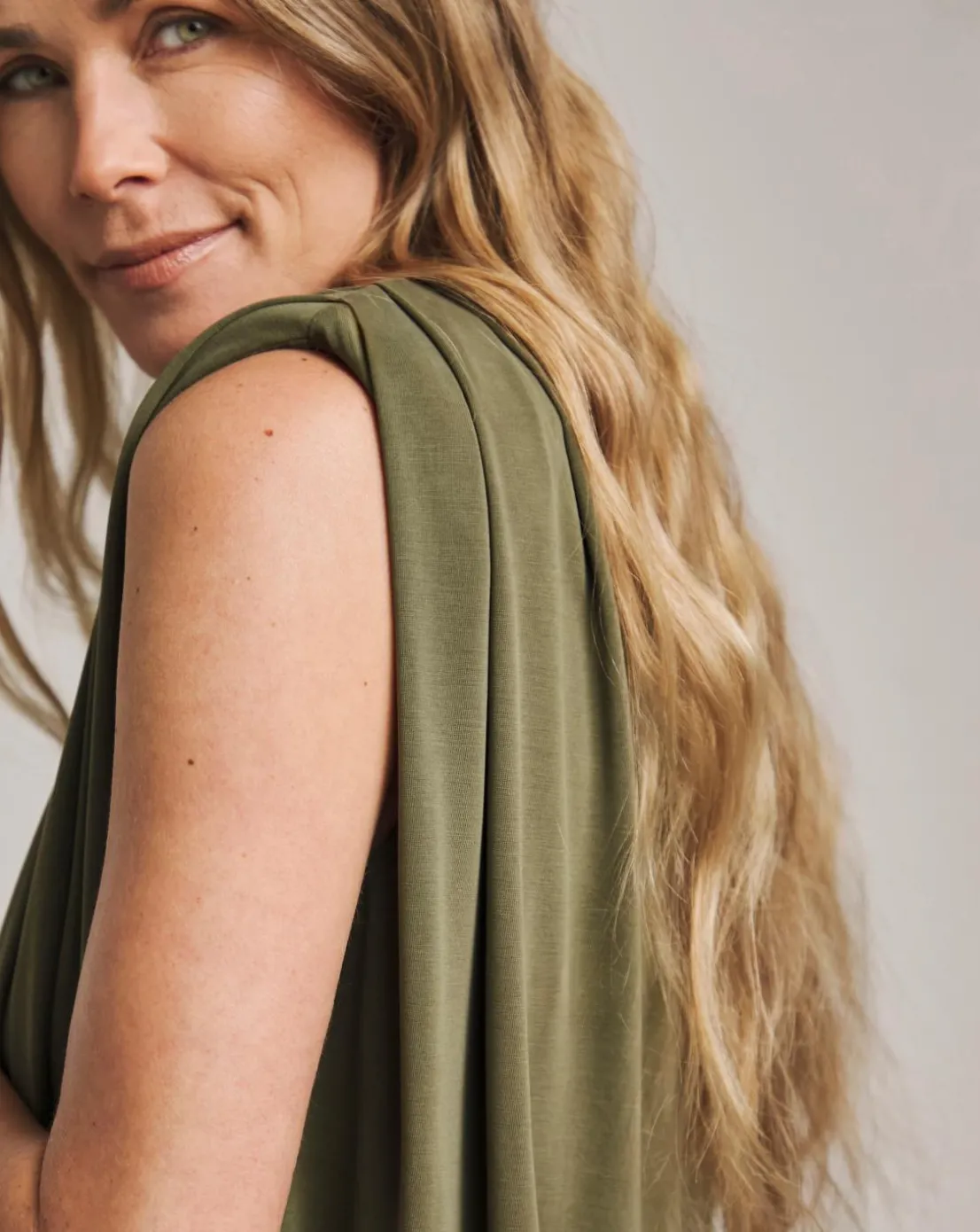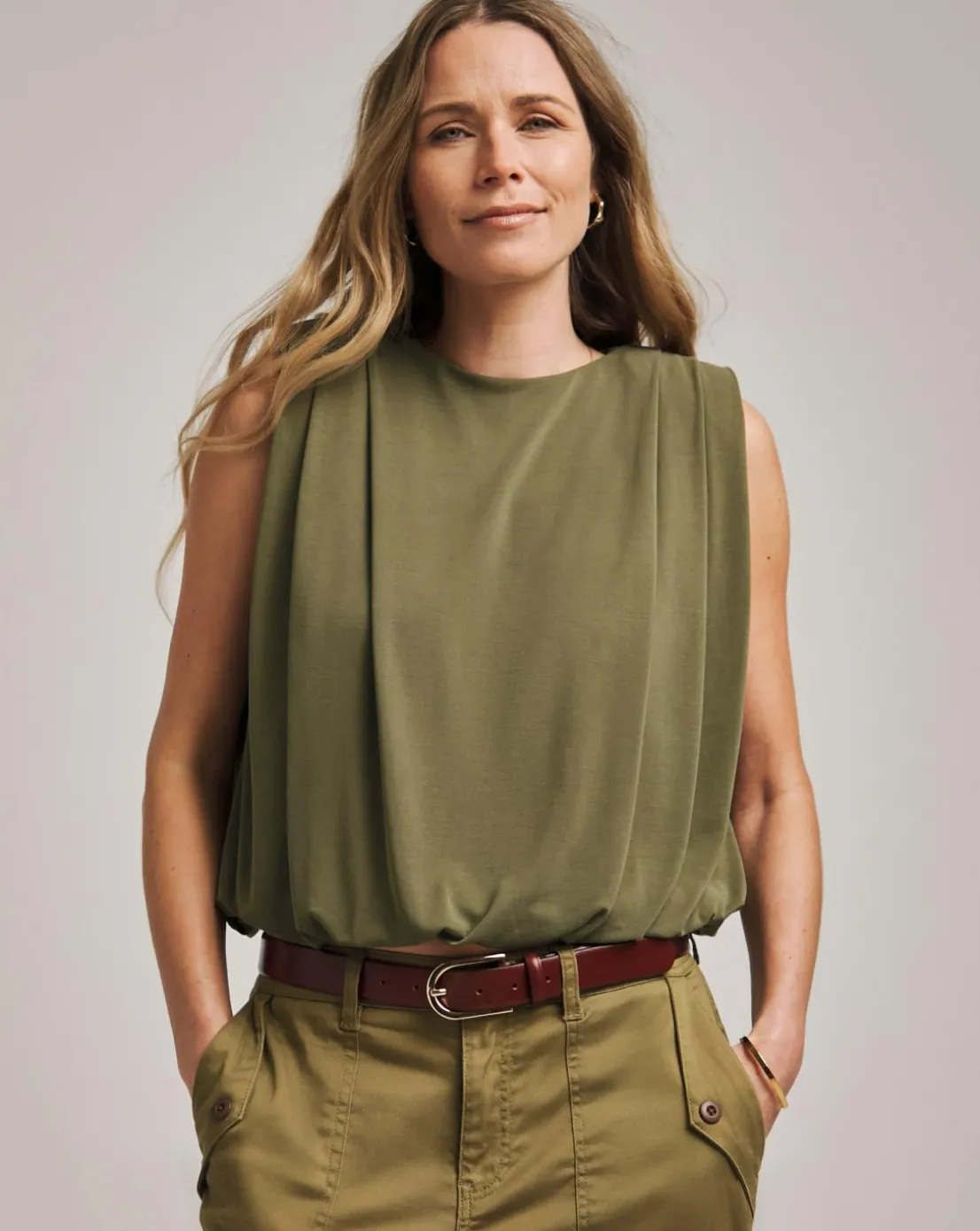 This Khaki Anthology Shoulder Pad Top is an effortless, stylish piece. With gathered shoulder detailing, an elasticated hem and made using Modal, it’s a unique and premium addition to your wardrobe.
