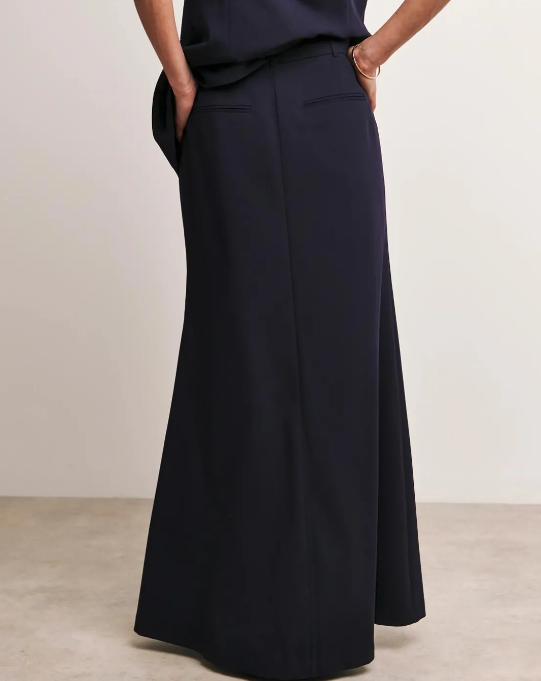Our Anthology Maxi Skirt is made using a premium tailored fabric perfect for day to night wear. The flattering fit hugs your waist, then flares towards the bottom giving a beautiful A line shape. Simply style with our matching waistcoat or dress down with a long sleeve top.
