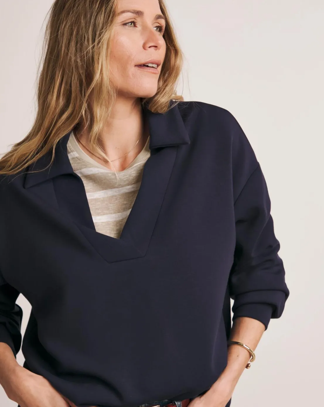 Our Anthology collared modal sweatshirt is a must have for the colder months. This piece adds quality to your everyday wardrobe.