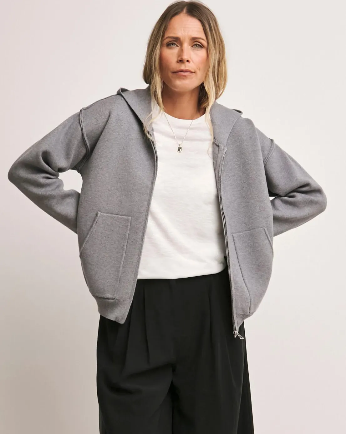 Our grey anthology bomber jacket is a timeless style that will work wherever. Featuring long sleeves, a hood and zip detailing.