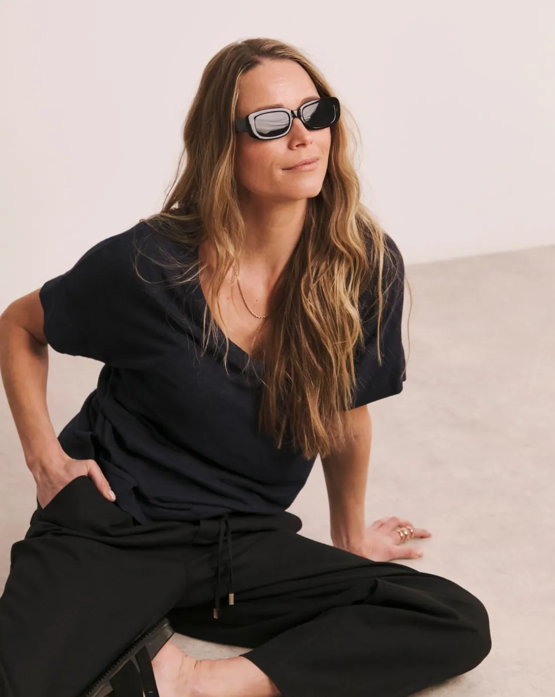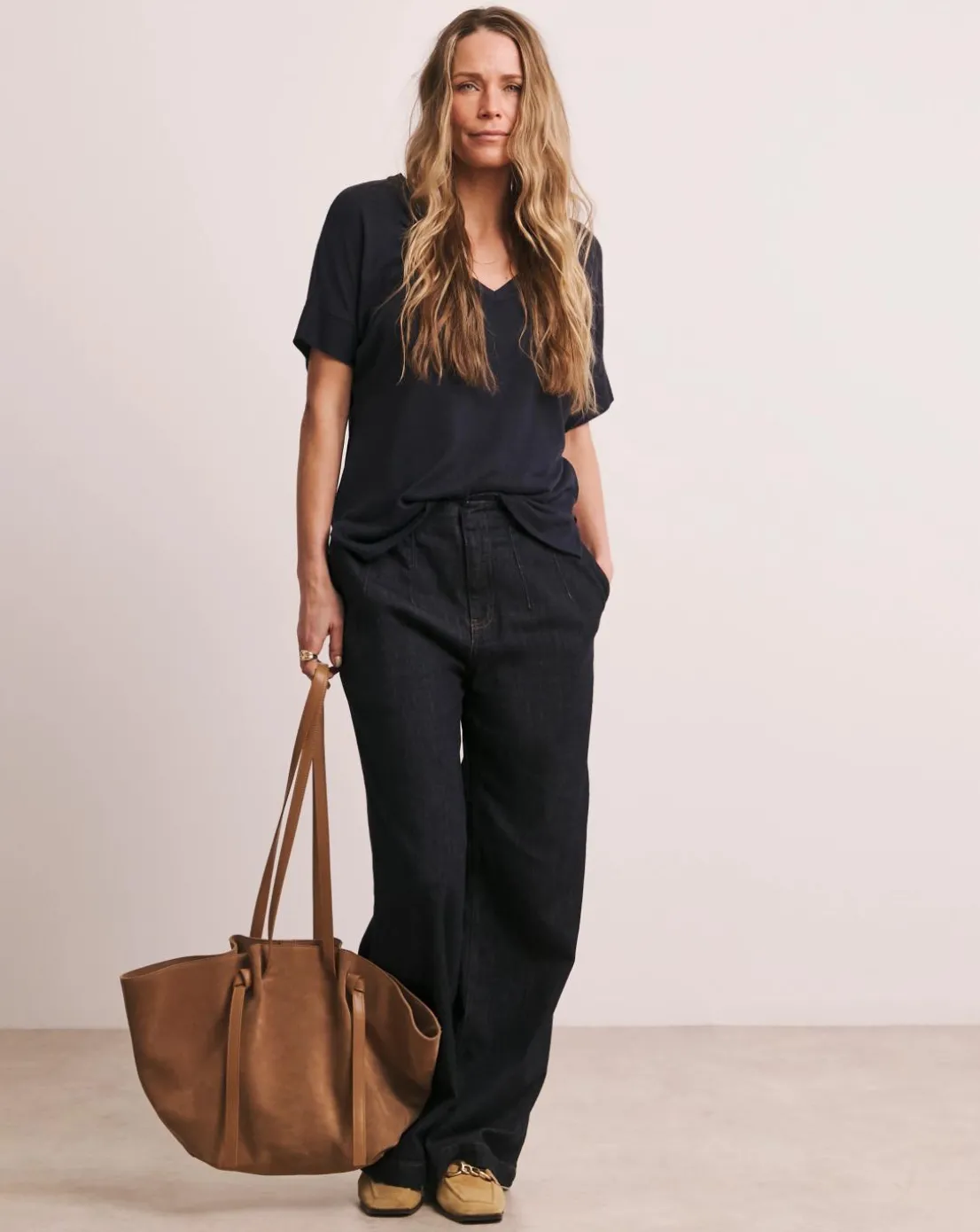 This navy Anthology V Neck T-Shirt made with linen mix material is a summer essential. The v-neck and grown on sleeve offers a comfortable, relaxed fit that’s perfect for every day.