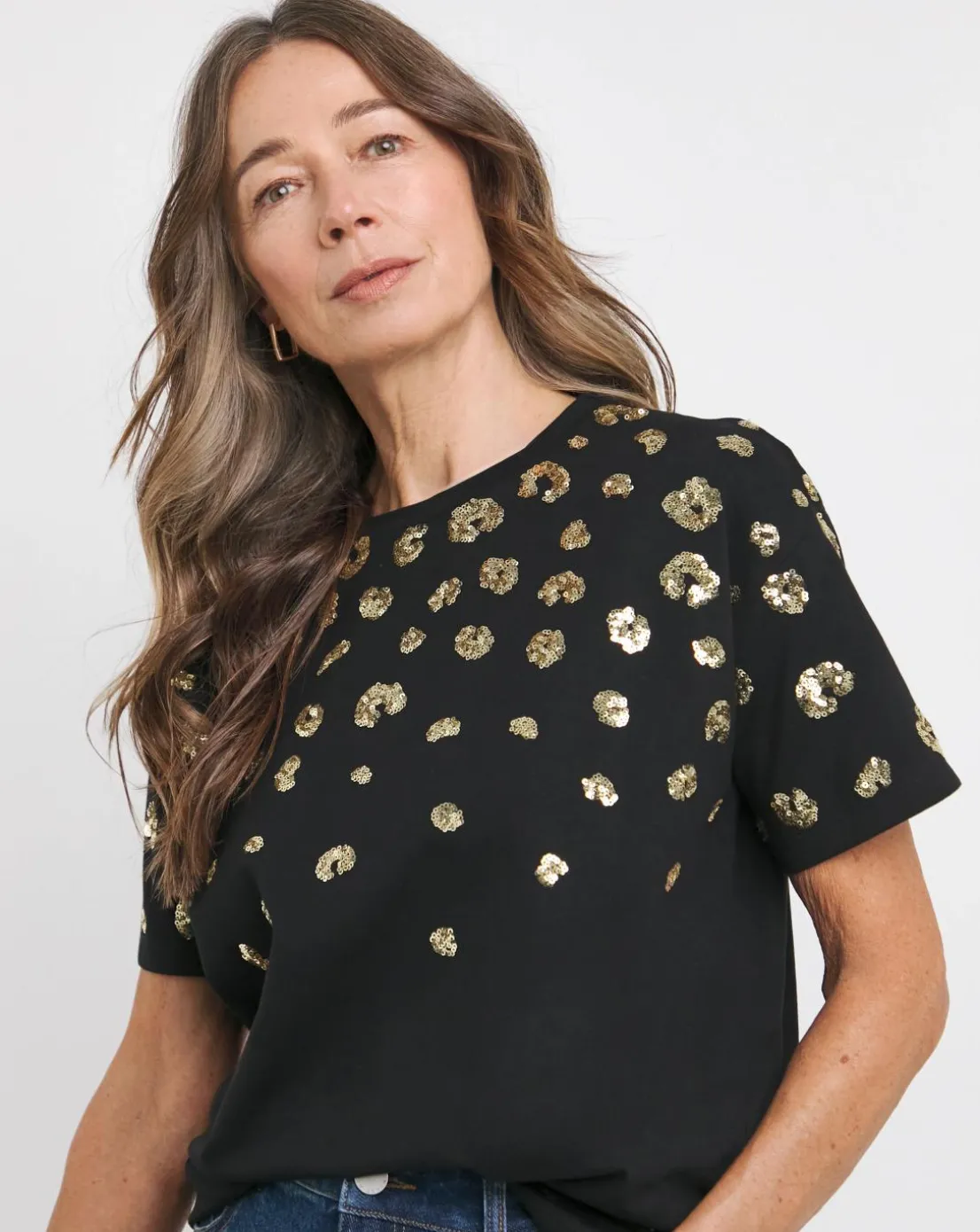 This sequin t-shirt is a trendy essential for your wardrobe. Featuring a crew neck and animal printed sequins, this piece can be dressed up or down.