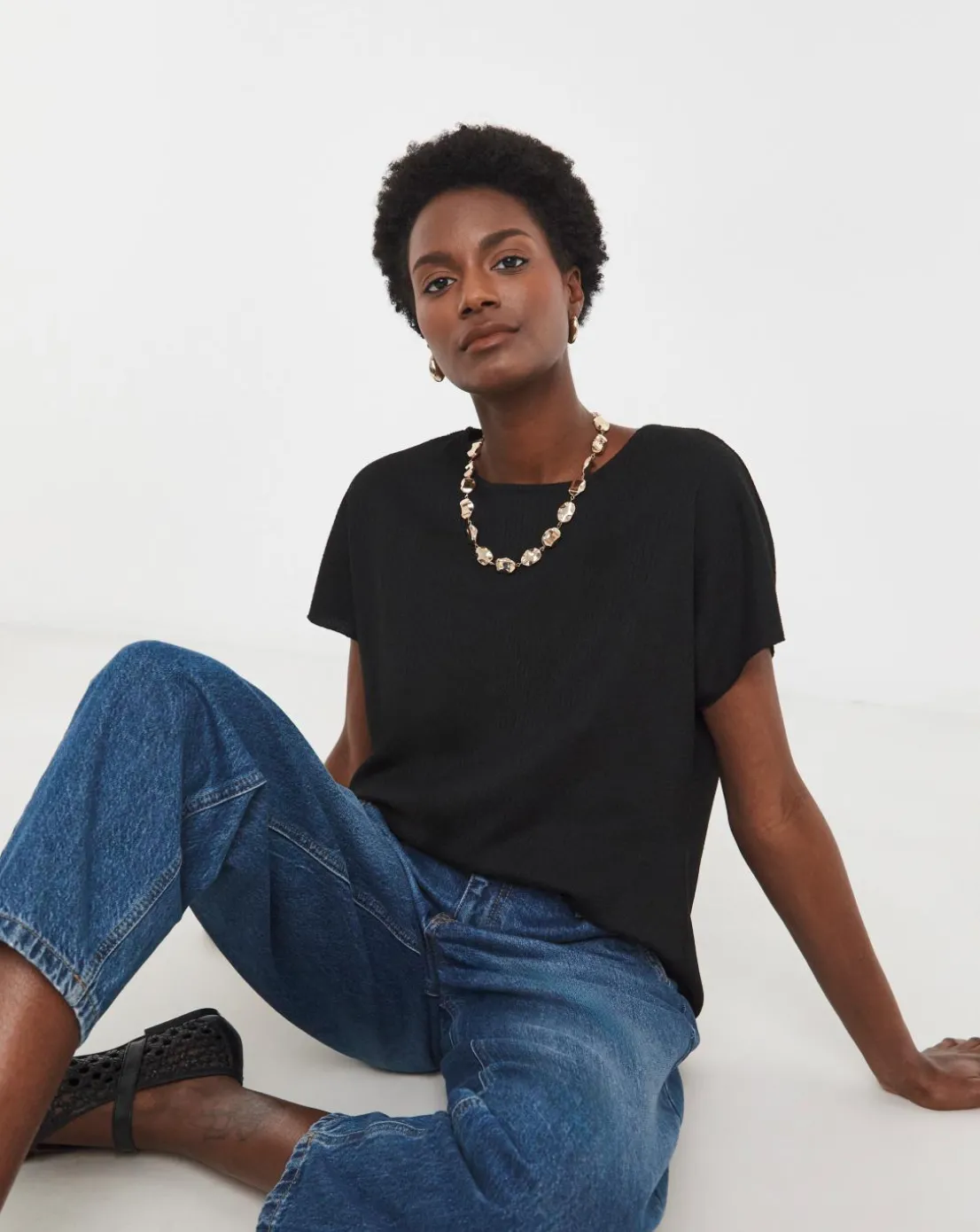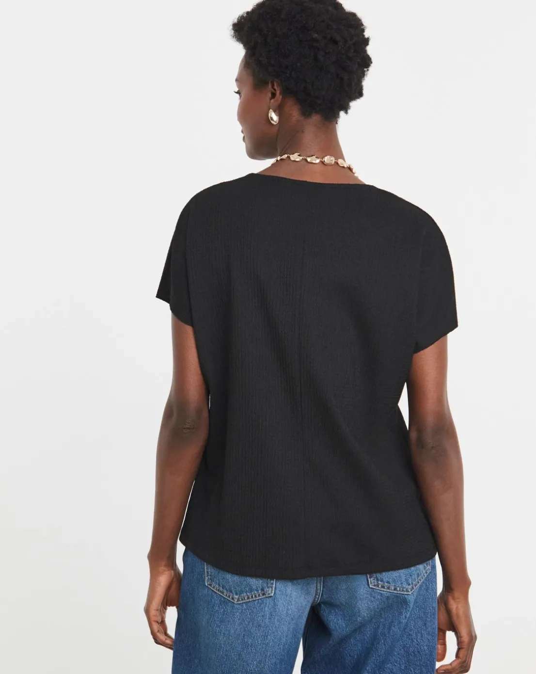Our grown on sleeve textured top adds newness to your wardrobe this season. Pair with jeans and flats for a stylish everyday look.