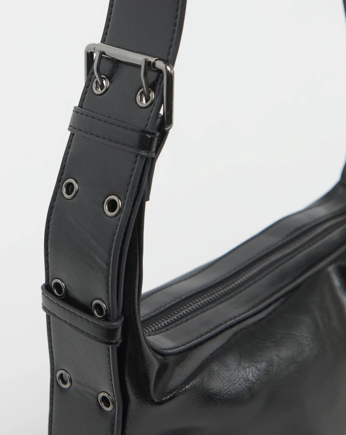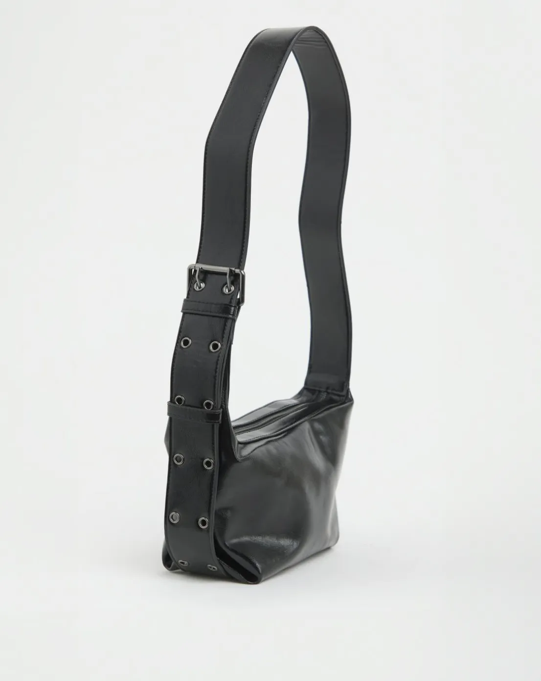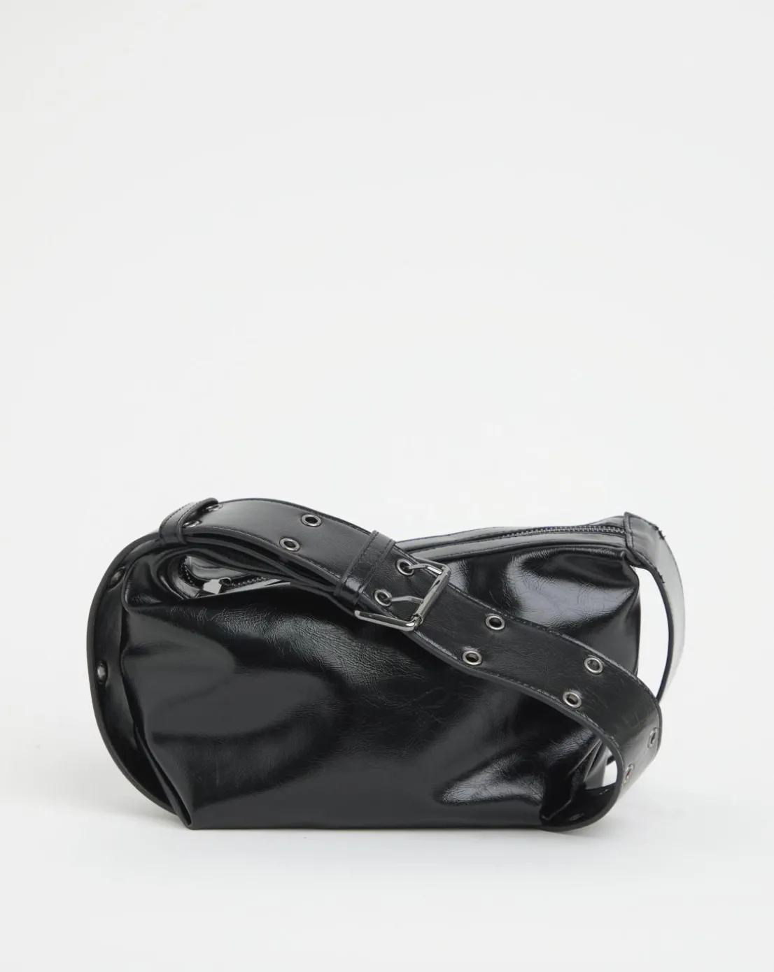 Upgrade your style with our Black Crossbody Sling Bag. This sleek bag features bold eyelet accents, adding a modern edge to its minimalist design. The spacious main compartment easily holds your essentials, while the adjustable strap ensures a comfortable fit for any occasion. Ideal for both casual outings and stylish evenings, this versatile bag elevates any outfit with its unique flair. Experience the perfect mix of fashion and functionality – order yours today!