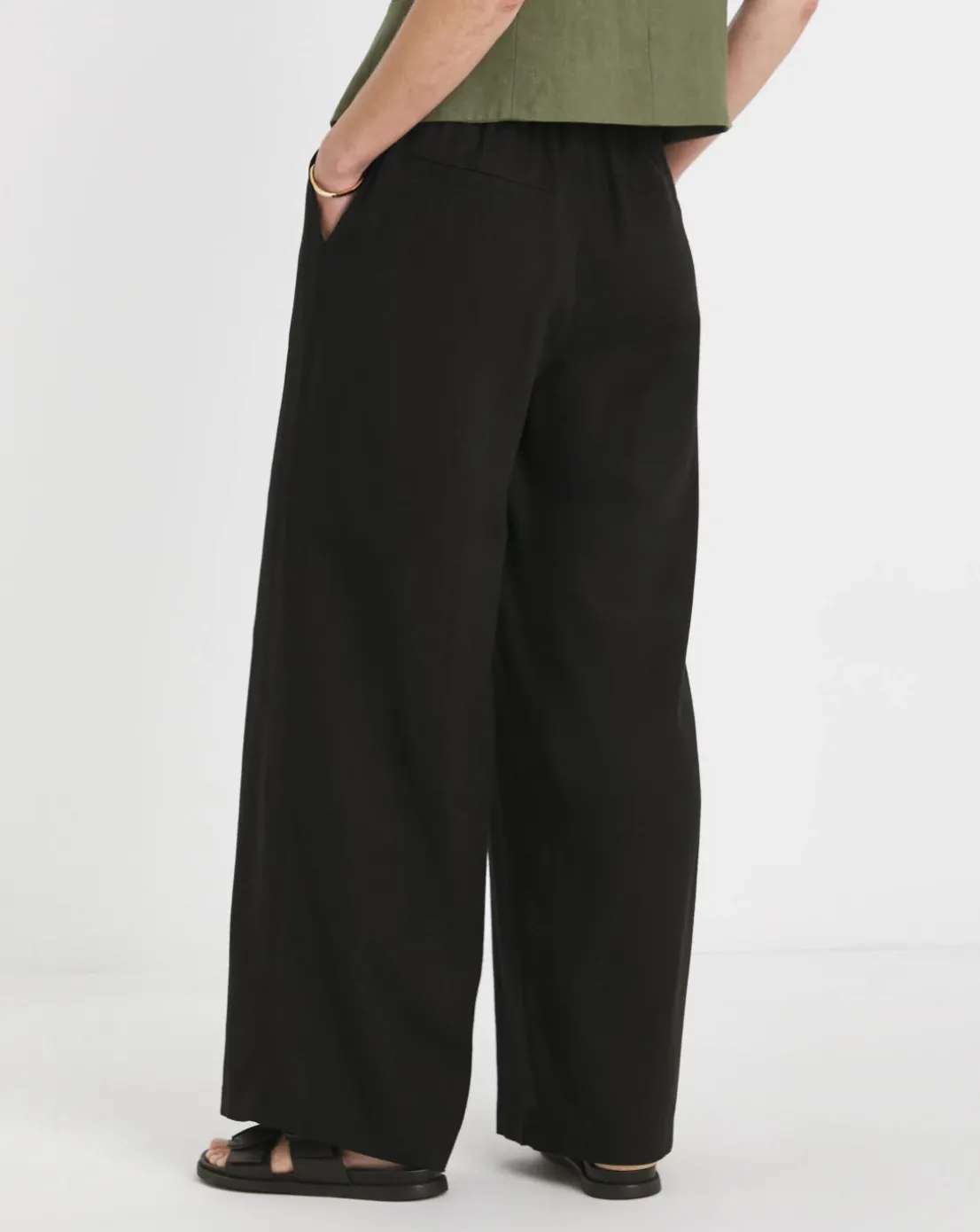 Black Linen Mix Wide Leg Trouser