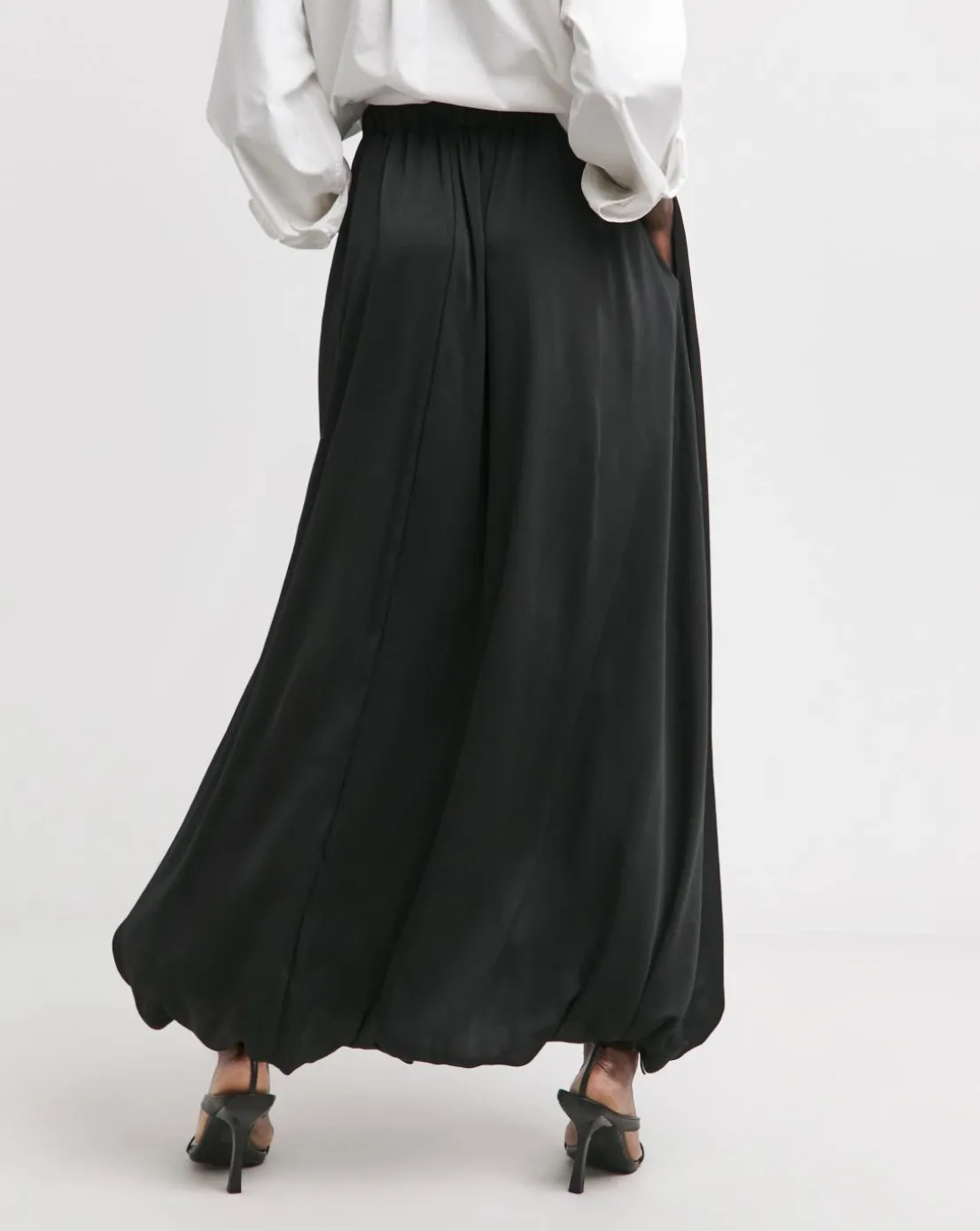 This gorgeous satin maxi skirt features a bubble hem, elasticated waist and pockets. Perfect for dressing up or down this winter season.