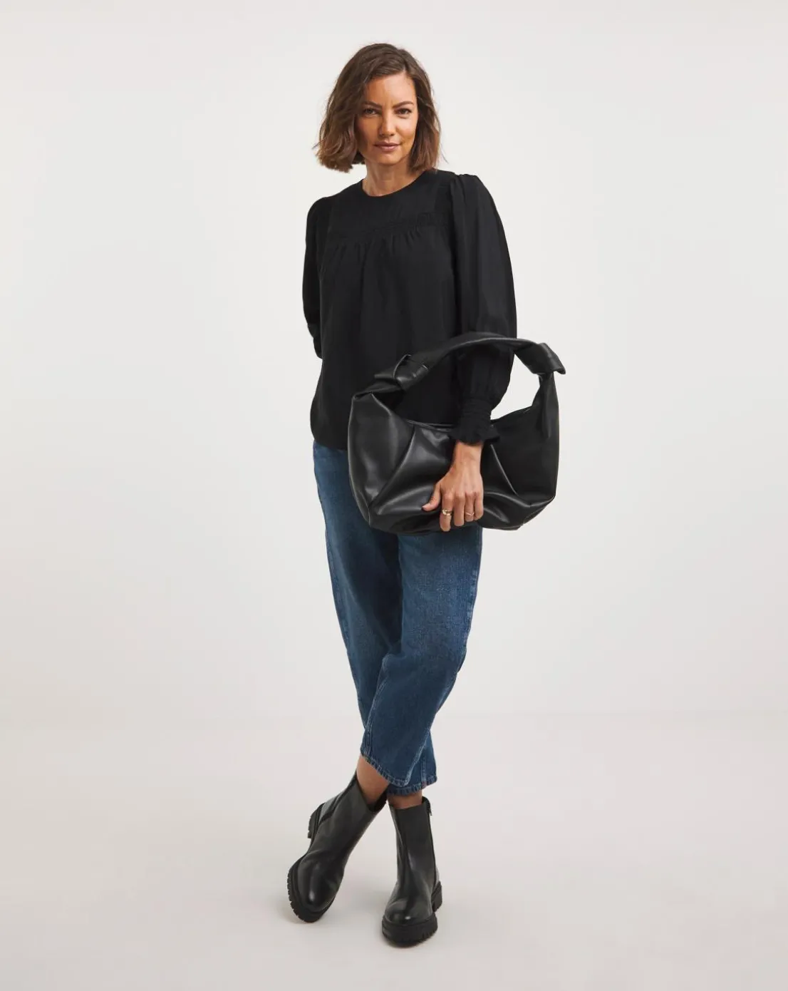 Be the first to review “Black Volume Sleeve Textured Top” Cancel reply