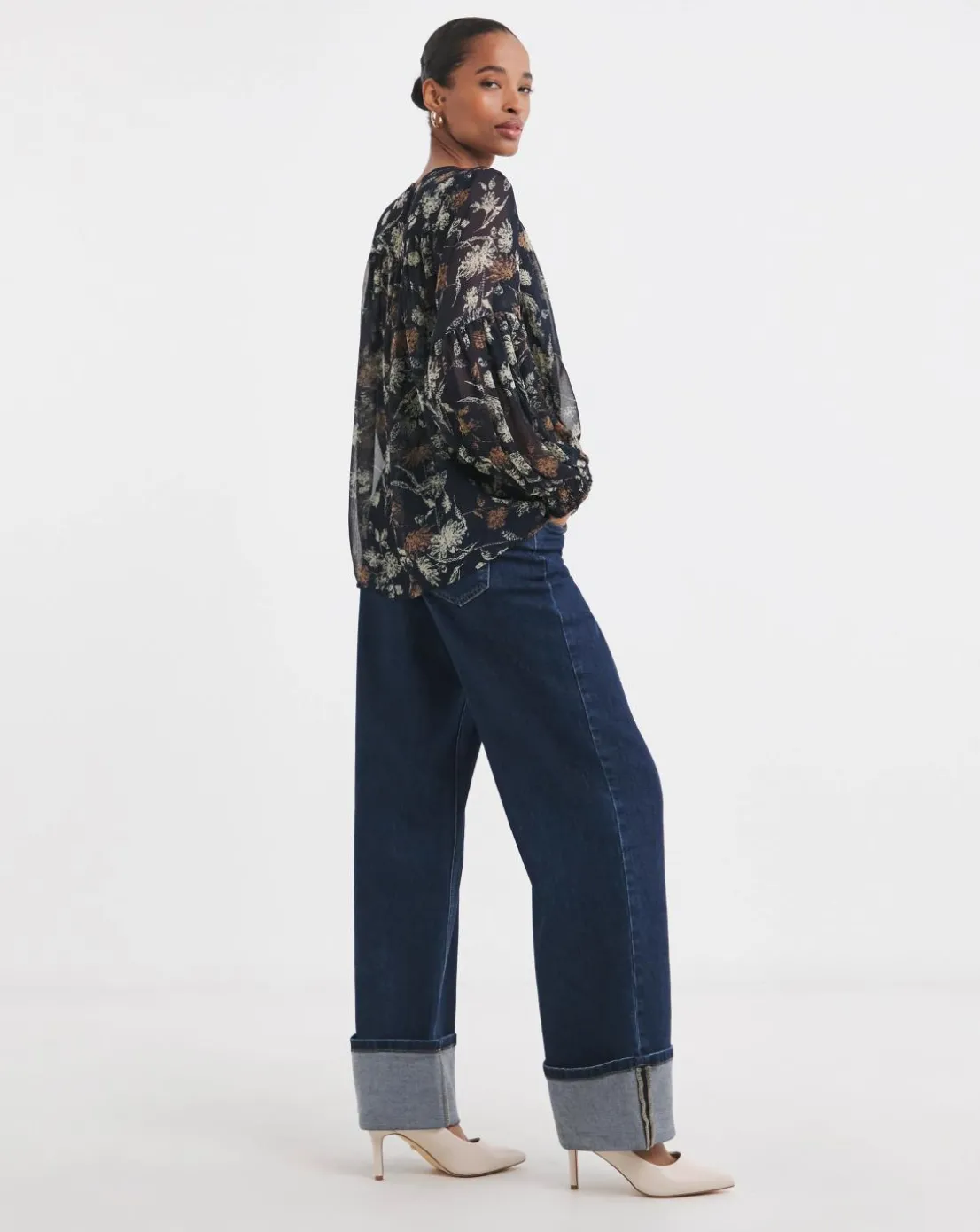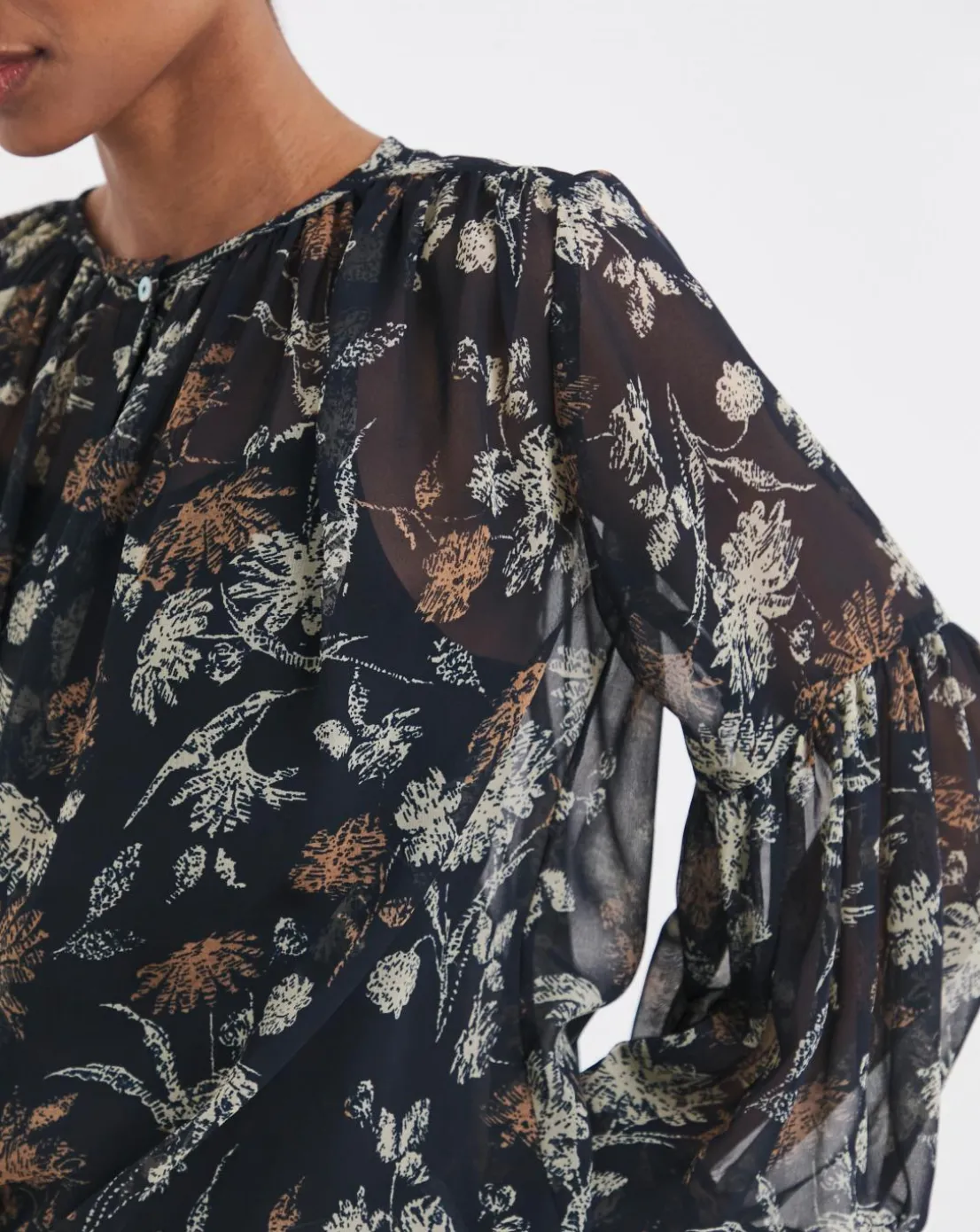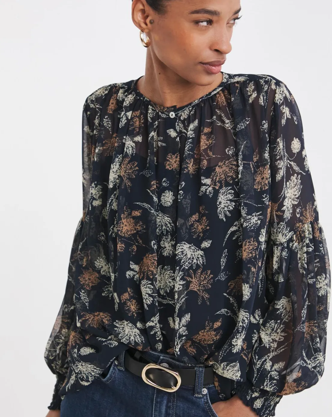 Our bestselling georgette blouse is an easy-to-wear, vesatile piece. It features a button through design and the semi sheer, lightweight fabrication is perfect for layering. For a laid back, feminine look style this piece with some light denim and chunky boots.