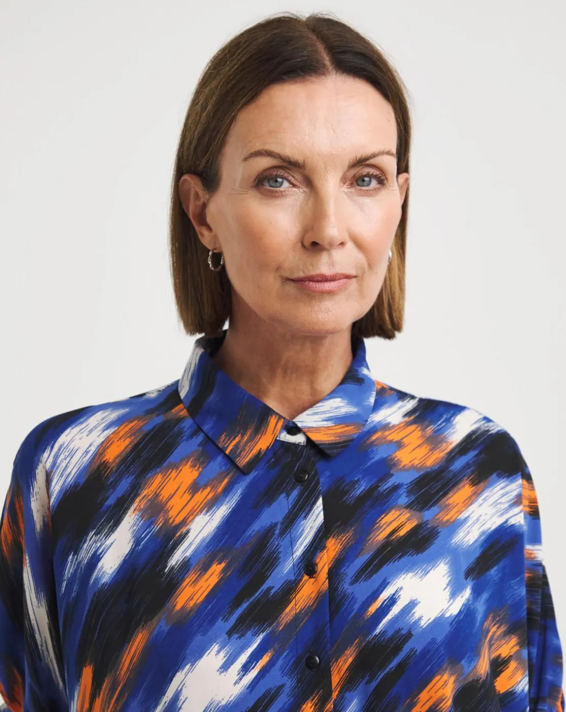 Everyone’s favourite blouse has a new print! The abstract colours would perfectly compliment blue skinny jeans or a pair of black leggings. And the longer length offers that extra coverage and gives a smart, relaxed daytime look.