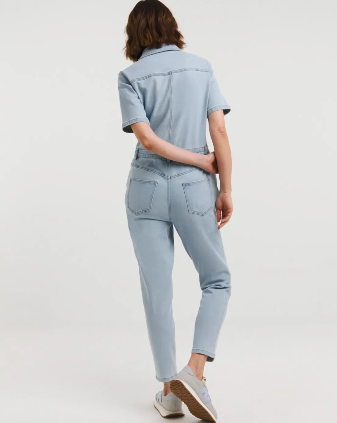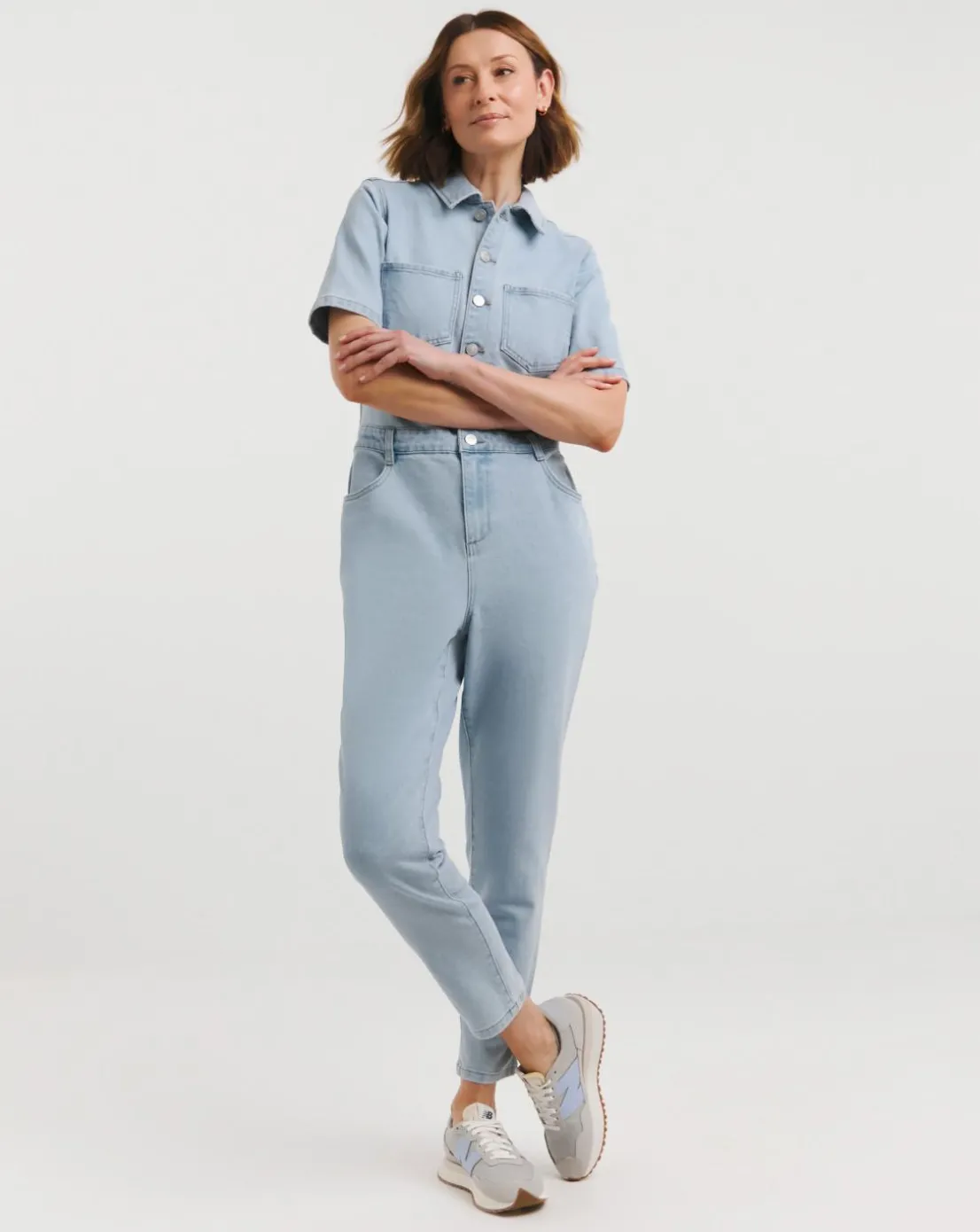 A gorgeous piece for your Spring/Summer wadrobe, this denim jumpsuit hugs your curves in all the right places. A chic and classic style featuring short sleeves, a button front, front pockets and a high waistband.