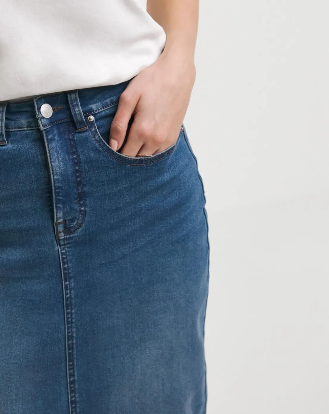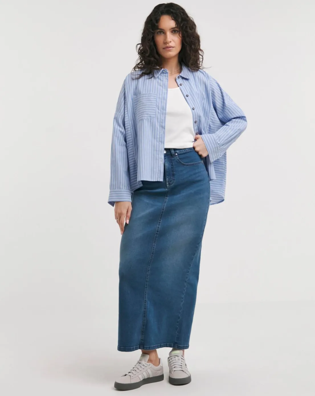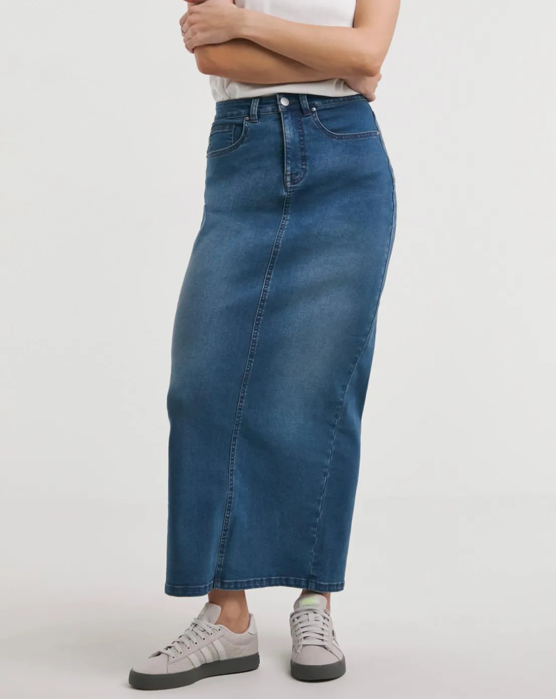 A new addition to the high waist super soft range, our maxi skirt, the perfect staple. Made from a super stretch denim that is designed to mould to your curves and flatter your shape, this skirt is the perfect combination of comfortable and flattering!