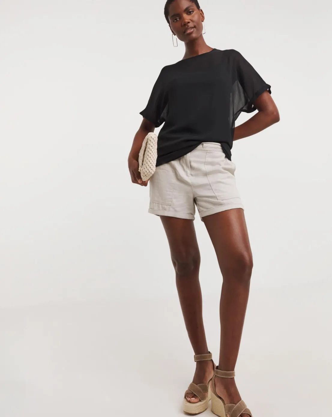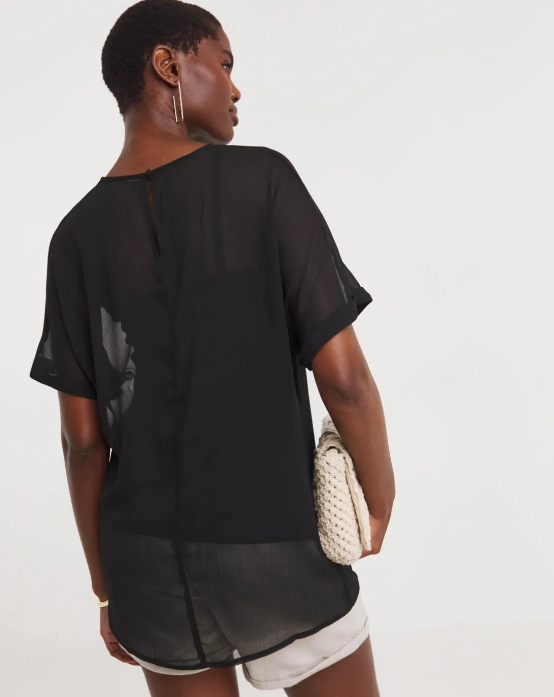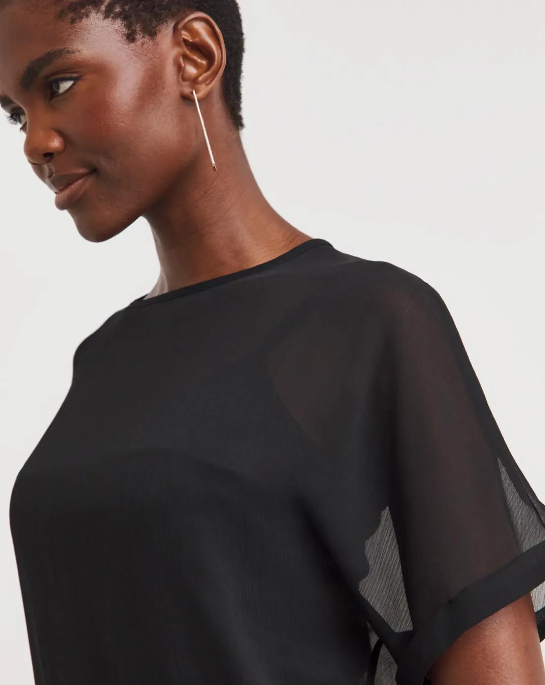 A contemporary feel to a timeless shape, this boxy chiffon top will last you season after season. Pack it for your holidays with denim shorts and sandals, or style it with jeans and ballet flats for a sophisticated and effortlessly chic going out look.