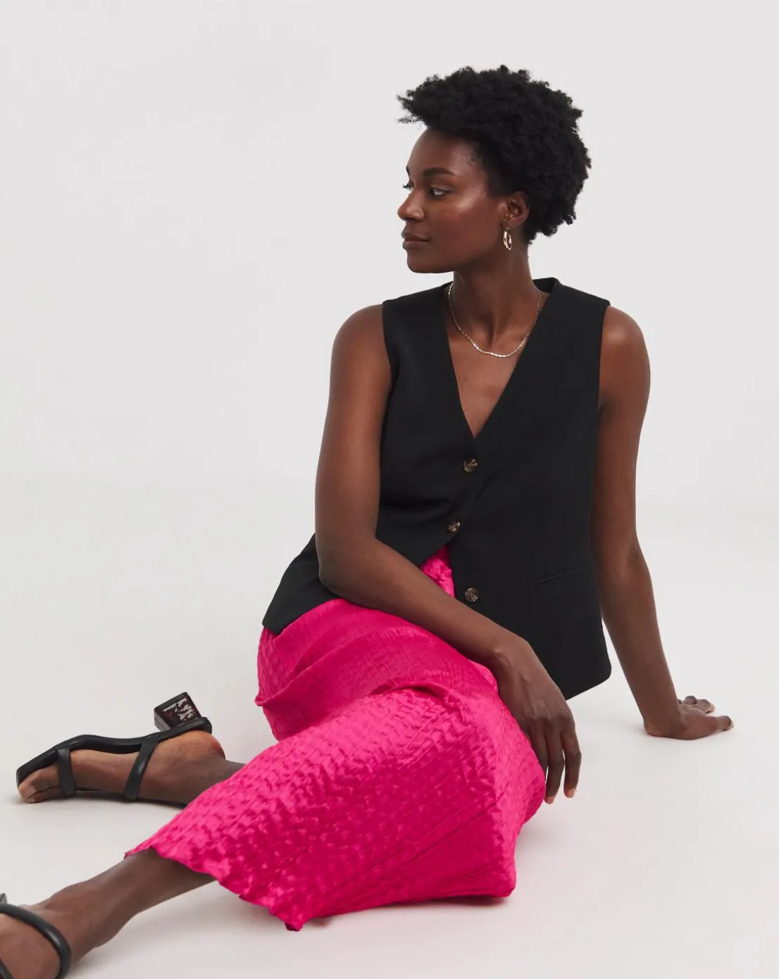 Be the first to review “Bright Pink Crinkle Satin Skirt” Cancel reply
