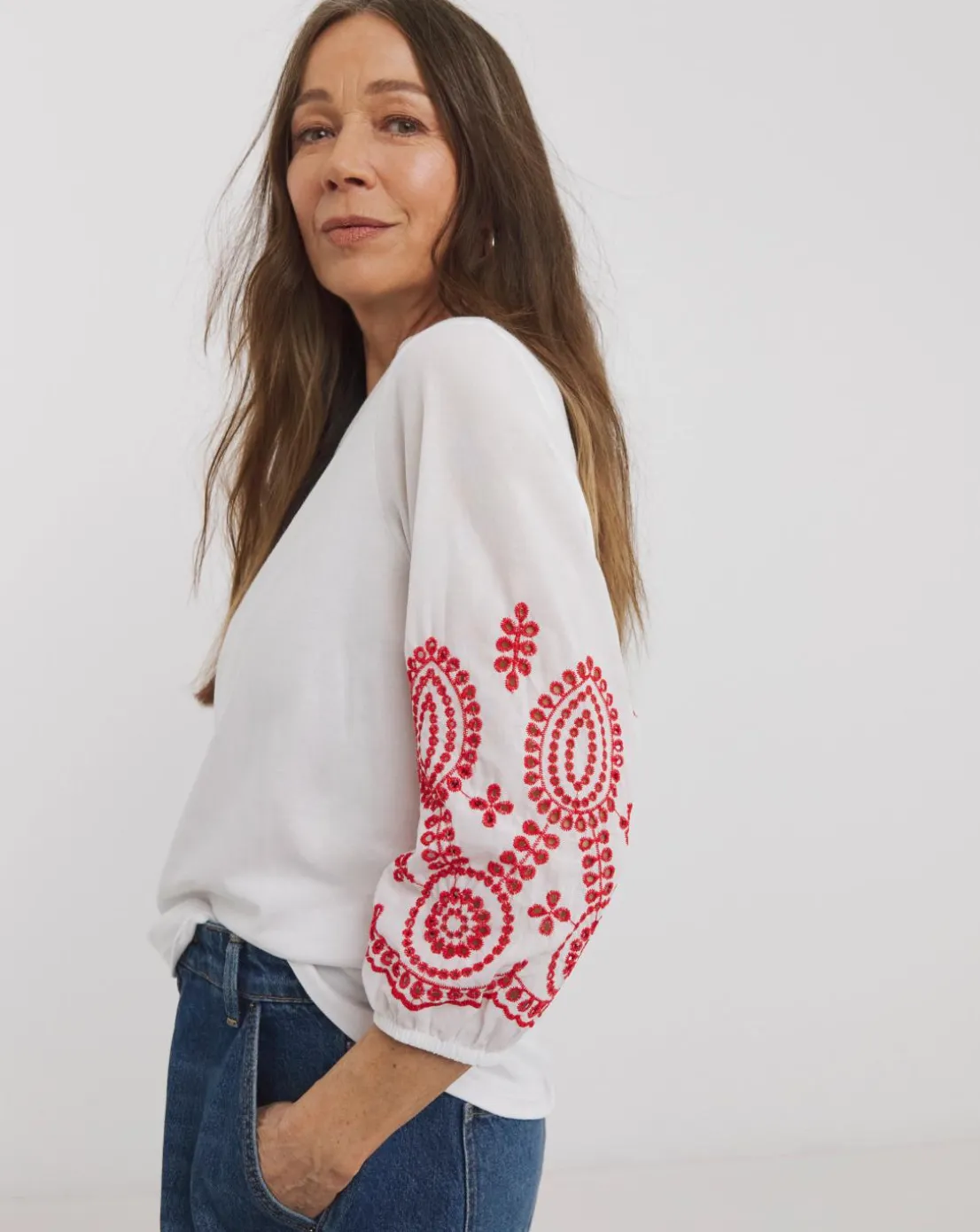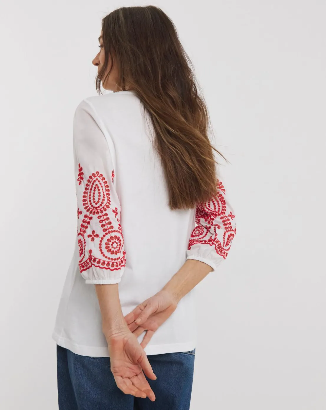 Broderie 3/4 Length Sleeve Crew Neck Top