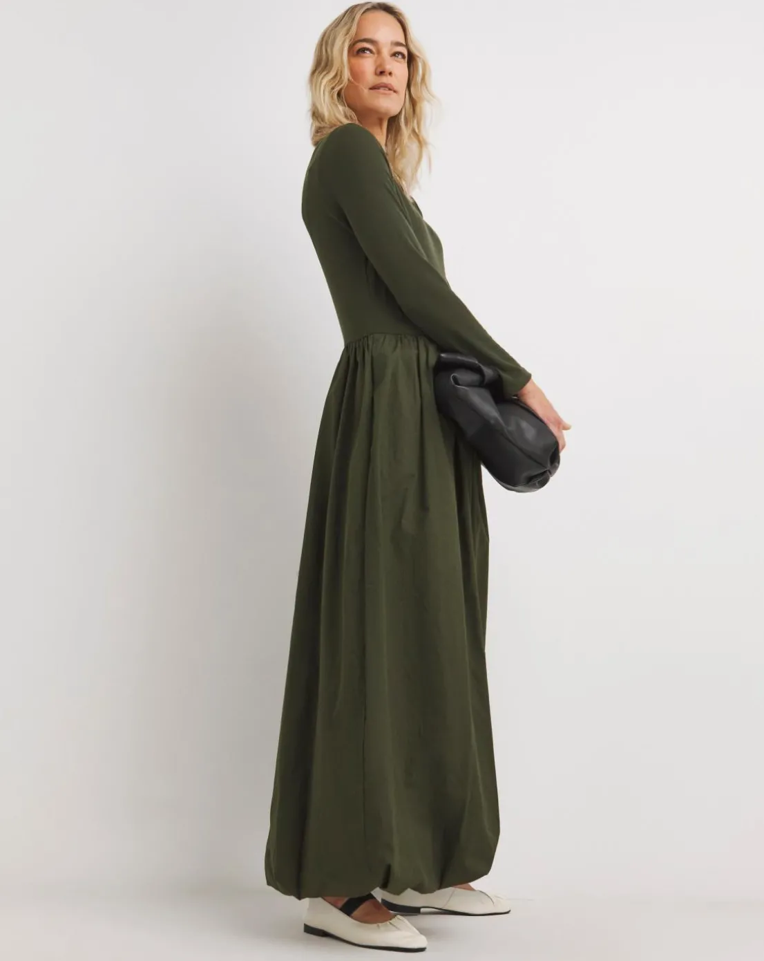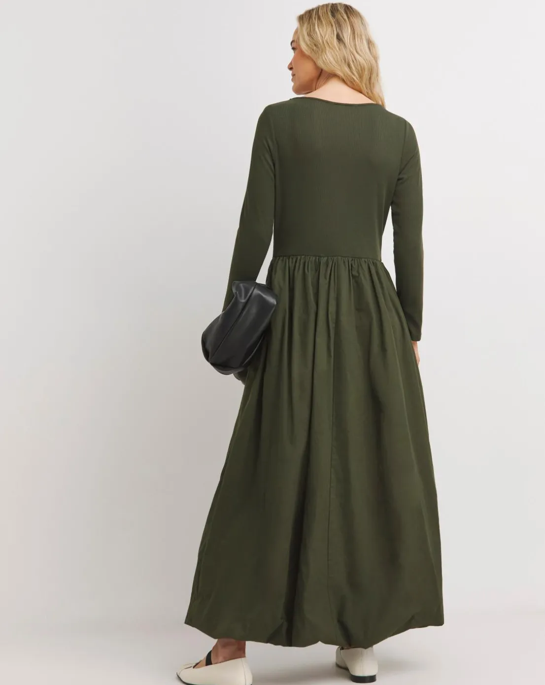 New to JD Williams, our bubble hem poplin rib dress. Featuring a full voluminous swing with a hidden hem creating a bubble effect and a long sleeve with a curved neckline. The dress falls to maxi 50 inches.