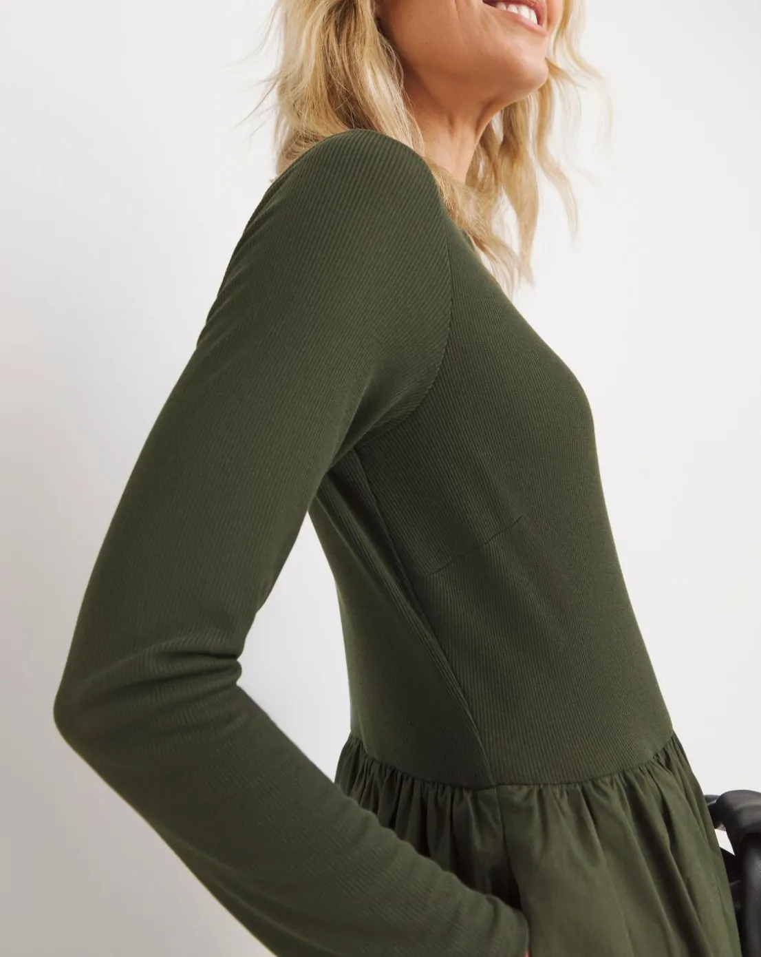 Bubble Hem Popplin Rib Dress