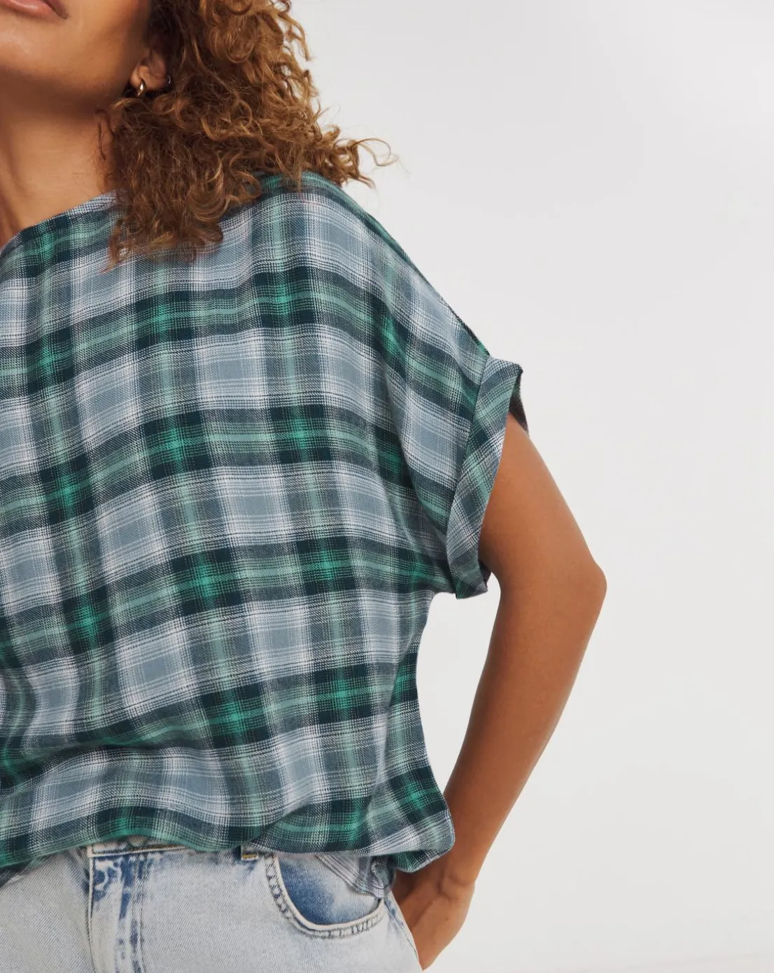 Check Boxy Short Sleeve Top