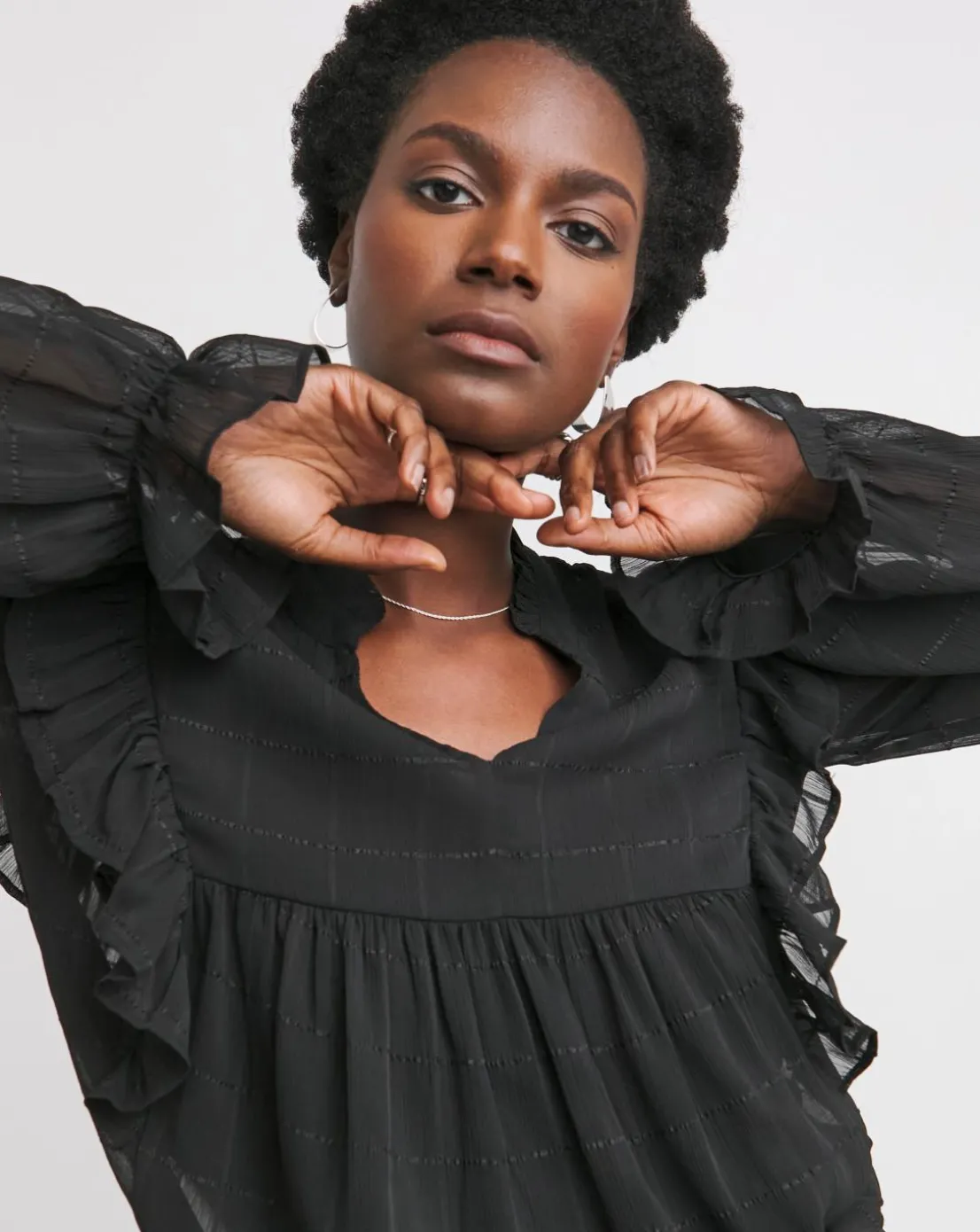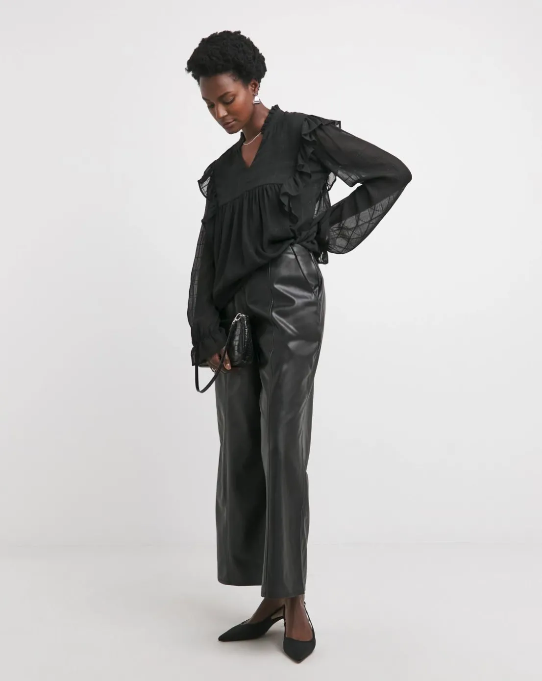 Give a feminine feel to any outfit with our checked frill detail blouse. In a lightweight and floaty fabric, it will become a go-to wardrobe staple.