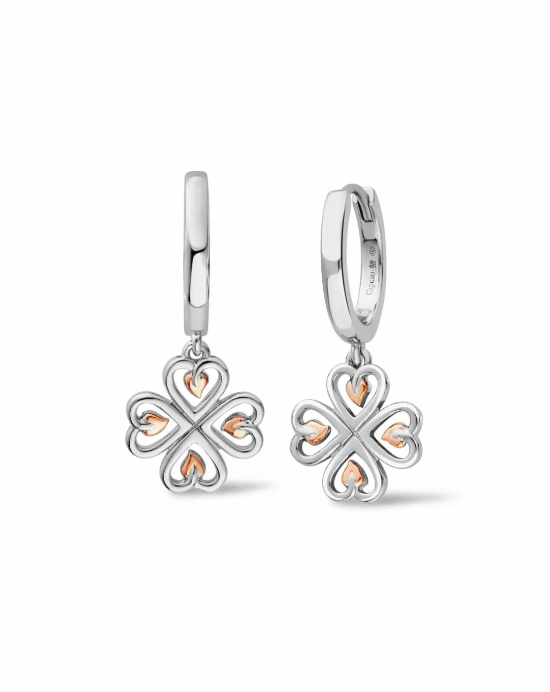 - The sweeping heart-shaped vines of our Tree of Life Sterling Silver Heart Drop-Hoop Earrings are tipped with 9ct rose gold detailing and clustered to form a pretty four-leafed flower.