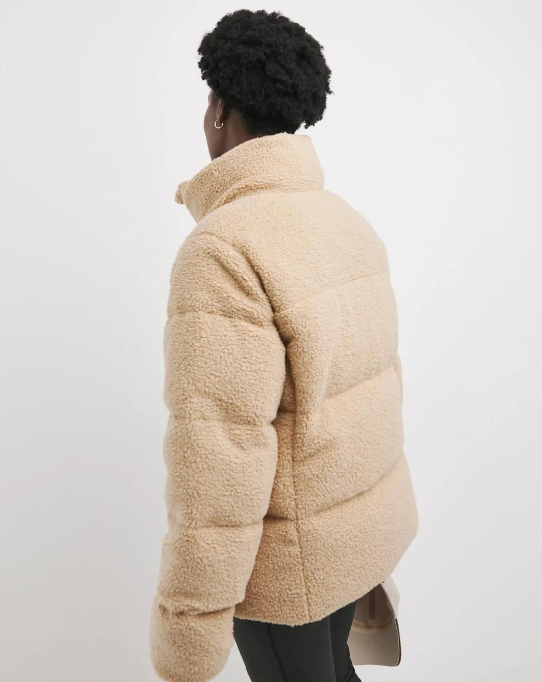A perfect balance of cold-weather comfort and style, this jacket wraps you in pillow-soft warmth, packed with sustainably sourced down insulation and a sherpa fleece lined collar.
