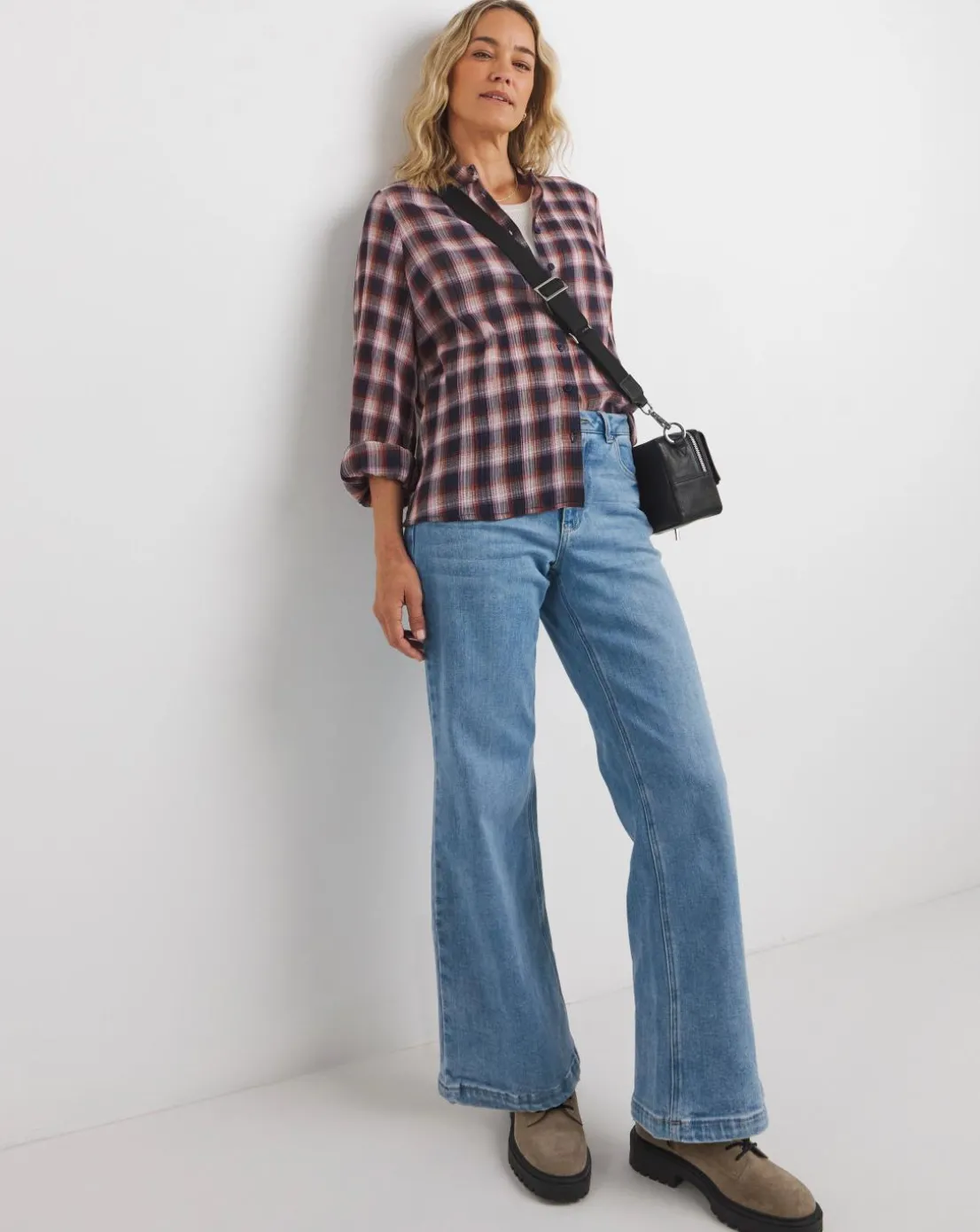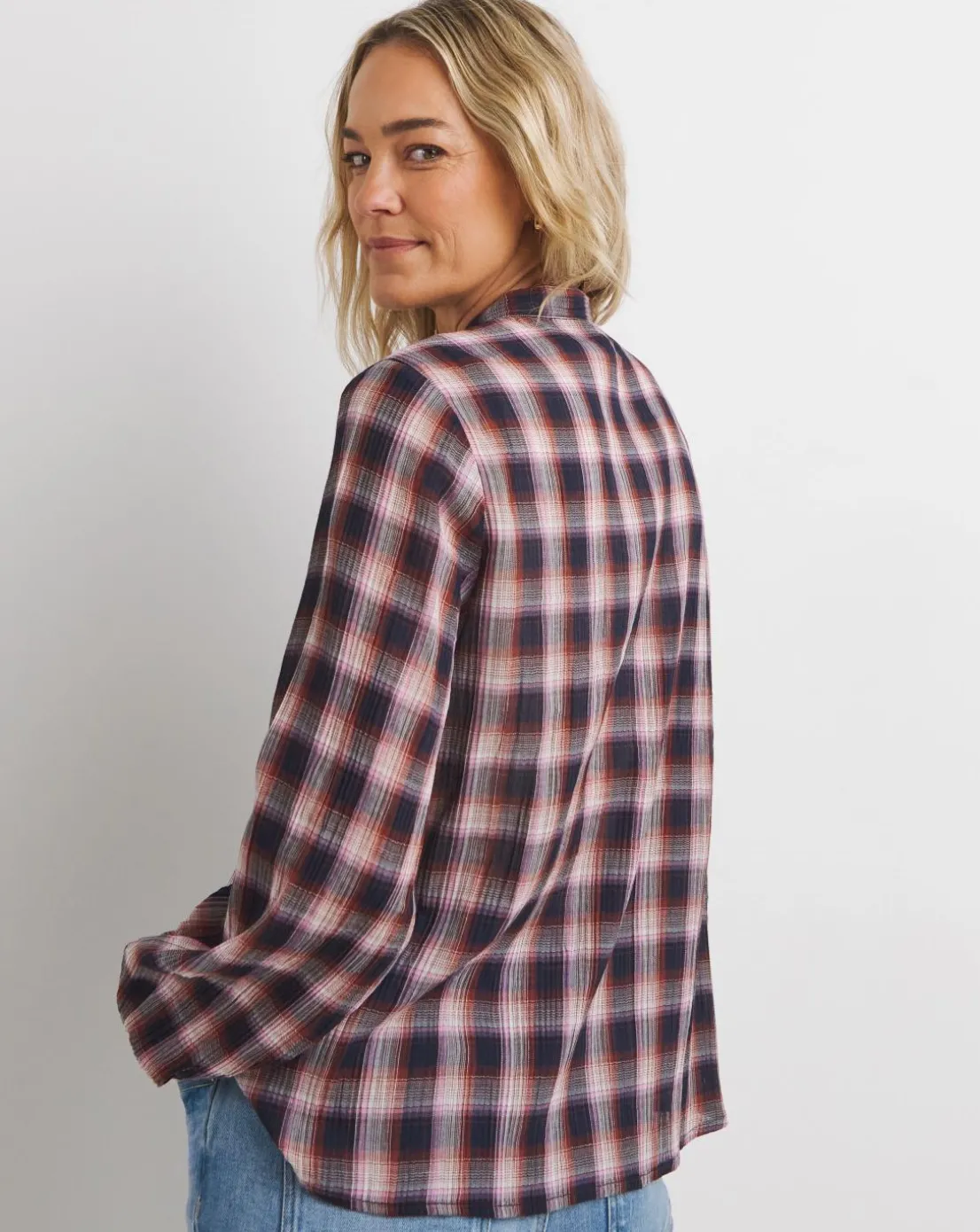Keep it cool and casual with this button through blouse featuring this gorgeous pink check. Wear it buttoned up or style it open over a tshirt, just add denim and boots for an on-trend off-duty look.