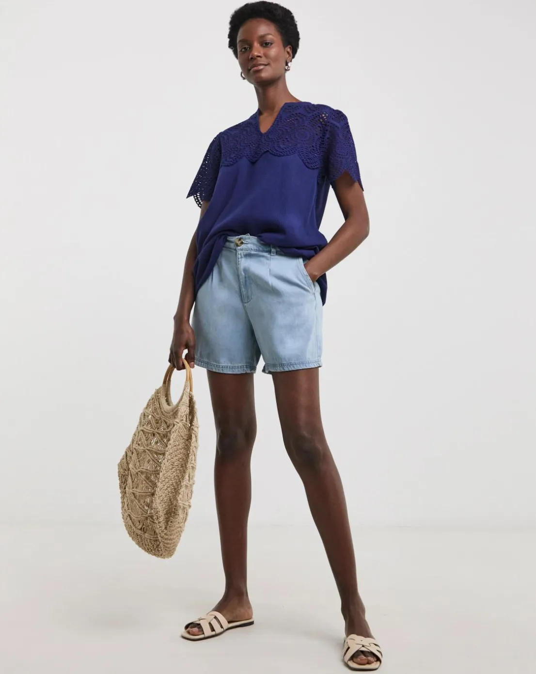 A beautiful piece for your summer wardrobe, this blouse features a crochet design across the top and sleeves and will add a touch of elegance to any outfit. Paired with denim shorts and chunky sandals it’ll give an effortlessly chic off-duty look.