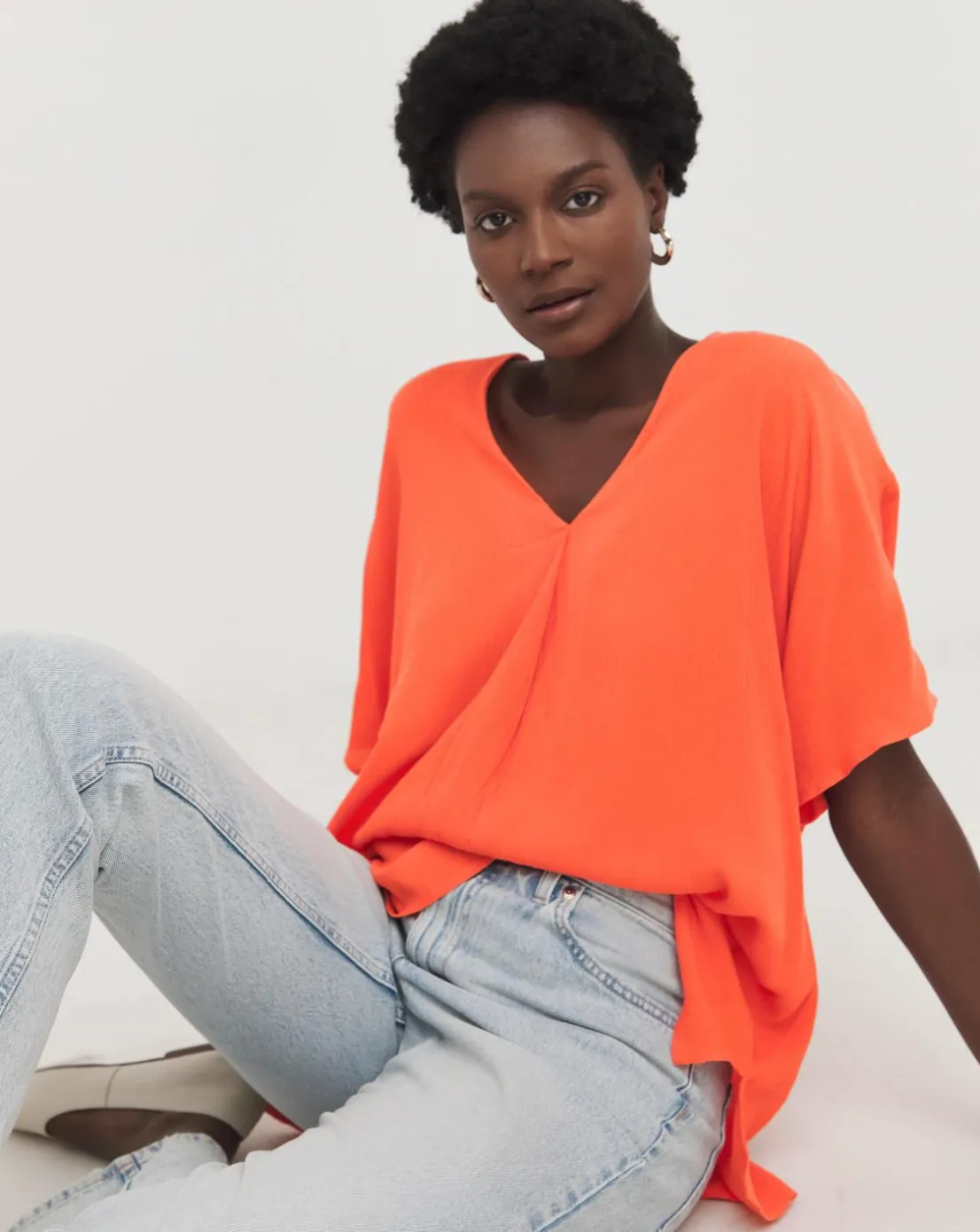 Our best-selling crinkle tunic top has had another colour update for the season! The well-loved design now comes in this standout orange, and is the perfect pop of colour for your summer wardrobe. The style looks great paired with denim, shorts or linen trousers, and is a great option for any holiday or staycation you have this season!
