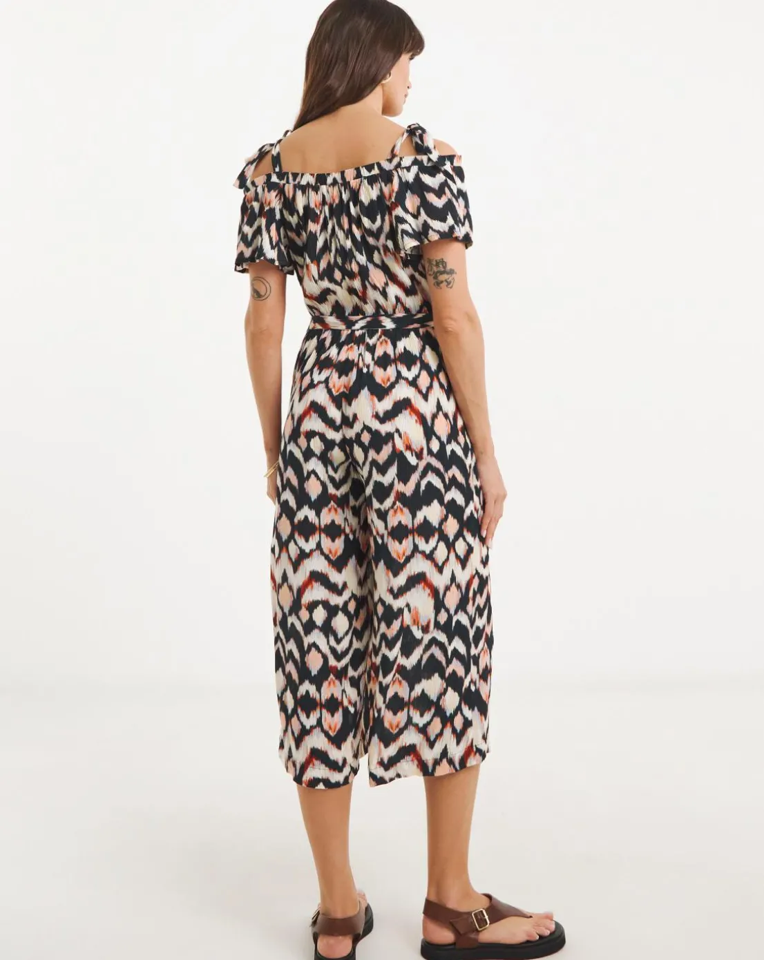 This new bardot shaped jumpsuit has been designed in a beautful print, making it easy to pair with anything! This jumpsuit features a bardot neckline bringing femininity to the heart of our design, short sleeves and a tie waist belt to cinch in at the waist