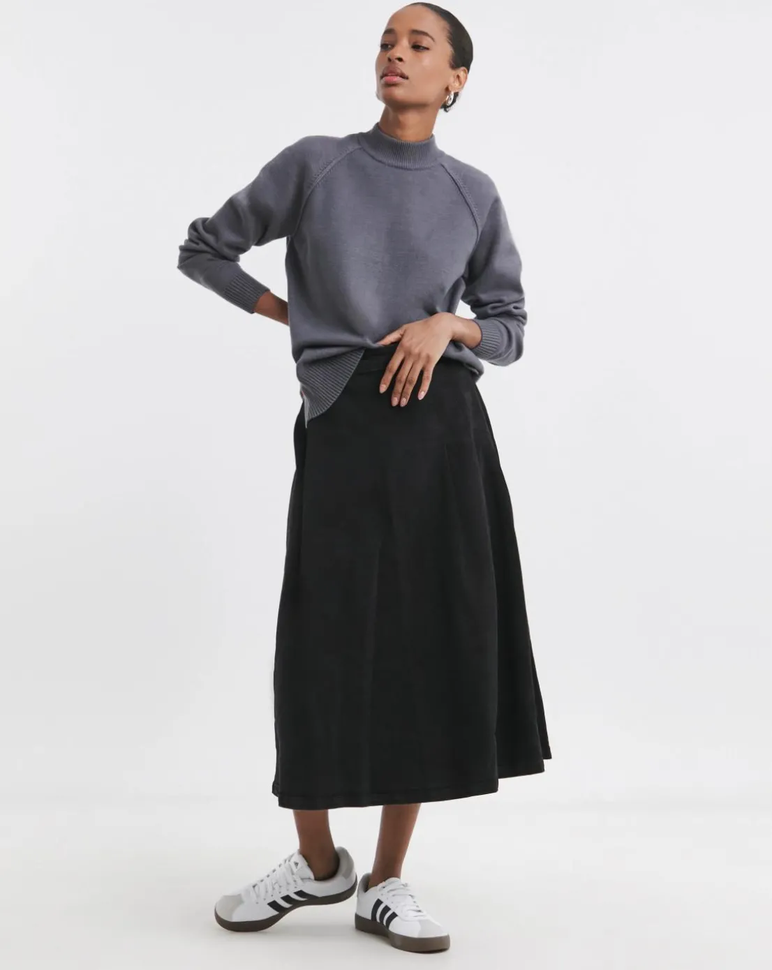 Be the first to review “Denim Black Full Pleat Denim Skirt” Cancel reply