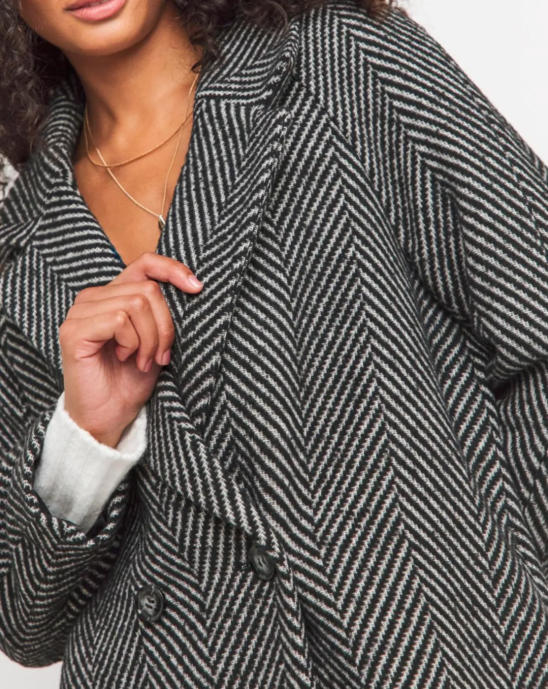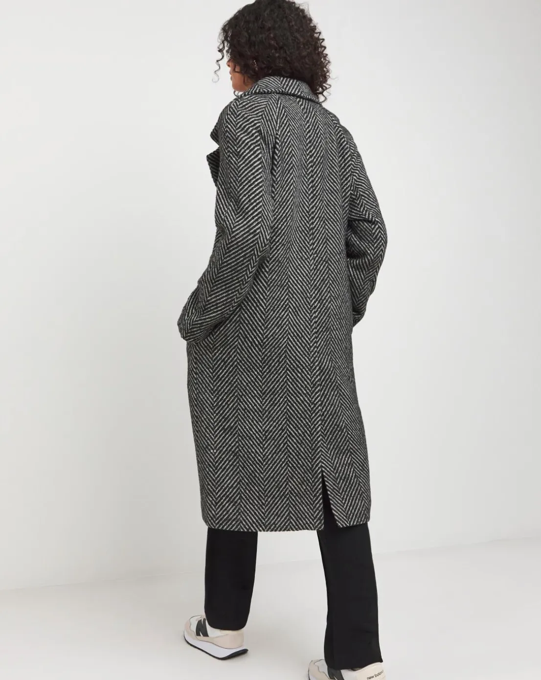 Look sophisticatedand stylish in our Herringbone Double Breasted Coat. Featuring welt pockets, a flattering midaxi length and raglan sleeves. Throw over a cosy jumper and jeans for a classy but cosy Autumn/Winter look.