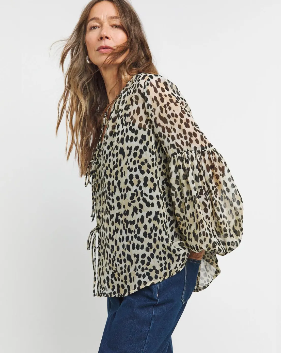 Georgette Blouson Sleeve Tie Detail Blouse – Leopard