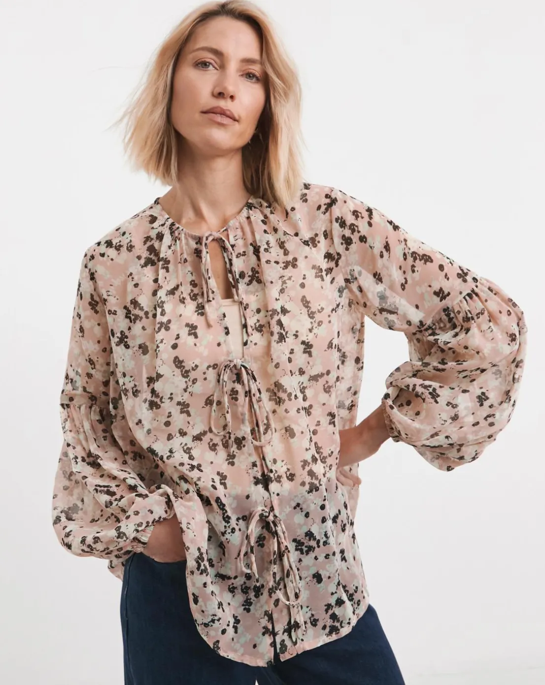 Georgette Blouson Sleeve Tie Detail Blouse