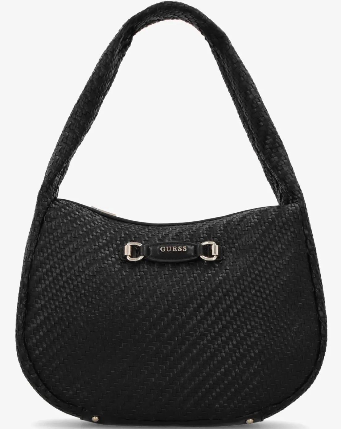 - Technical information: PU, Gold Tone Hardware, Logo Lined, Woven Design, Top Zip Fastening, Inner Zip & Slot Pockets, Shoulder Strap, Snaffle Detail, GUESS Branding, Includes Dust Bag