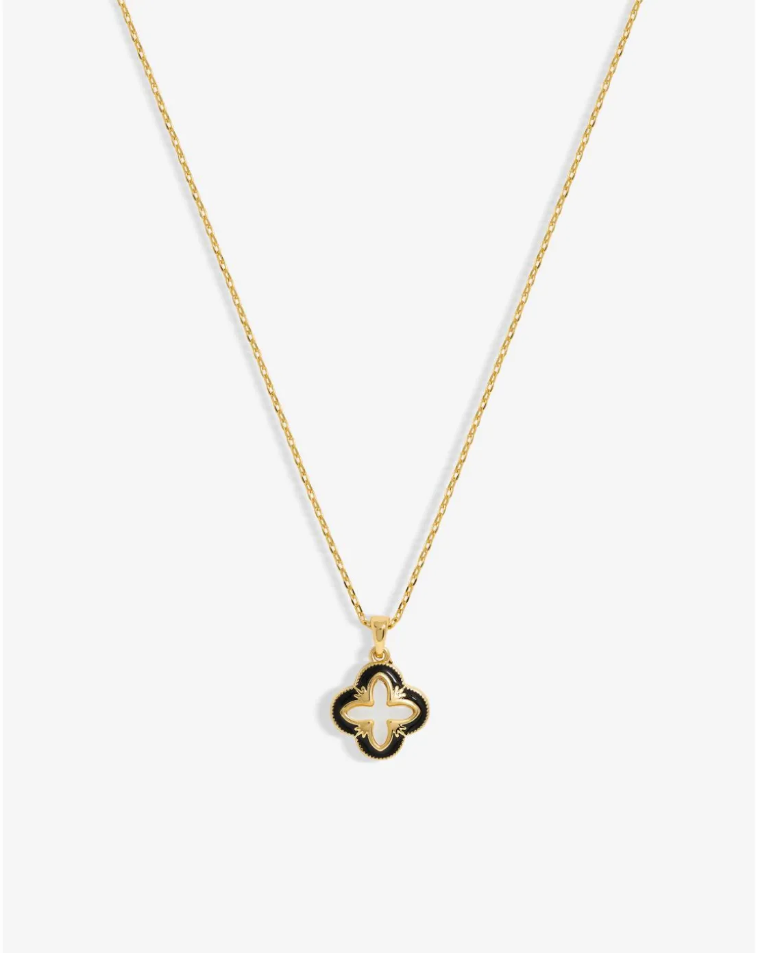 Inicio Gold Plated Jet Enamel And Mother Of Pearl Clover Pendant – Gift Pouch