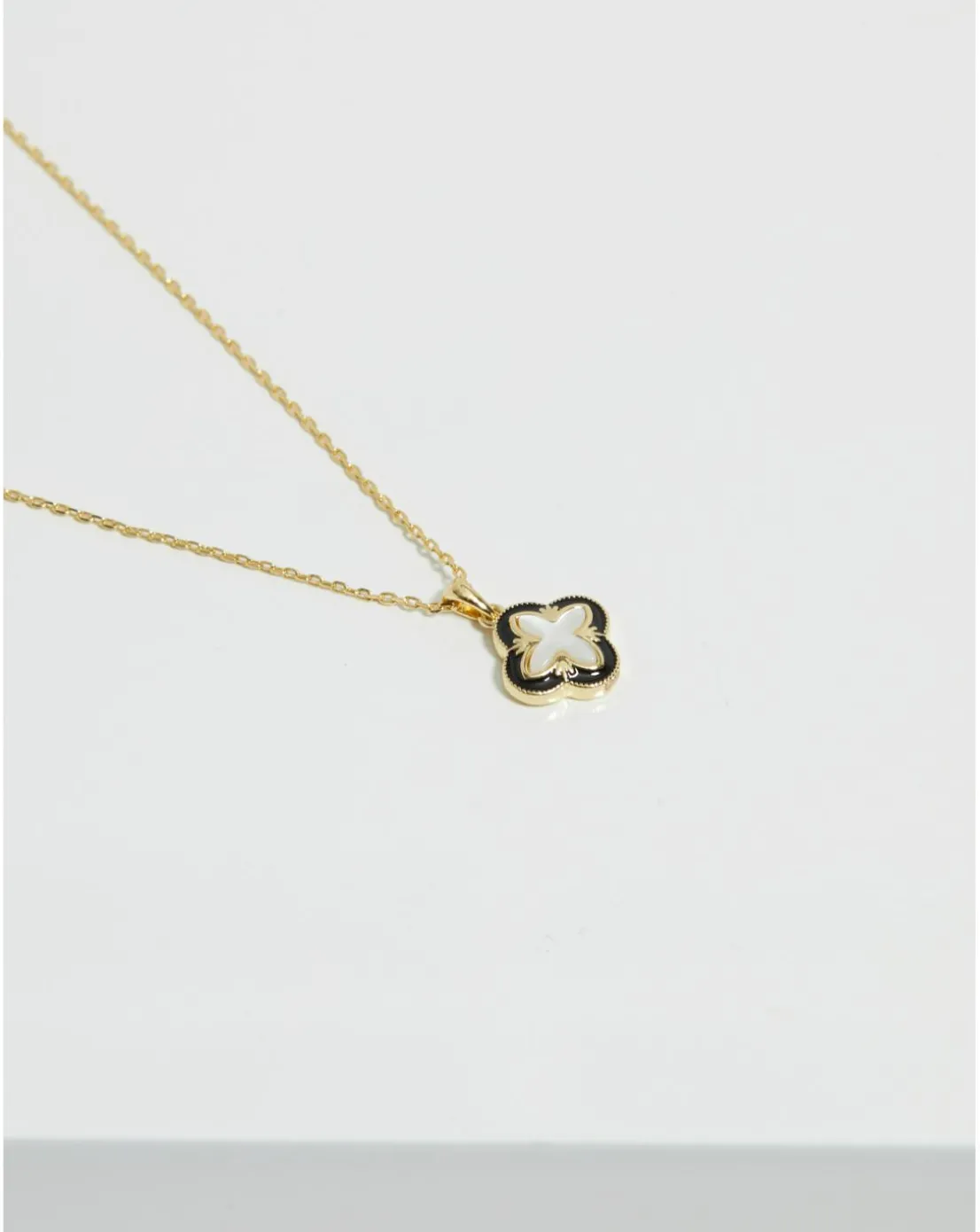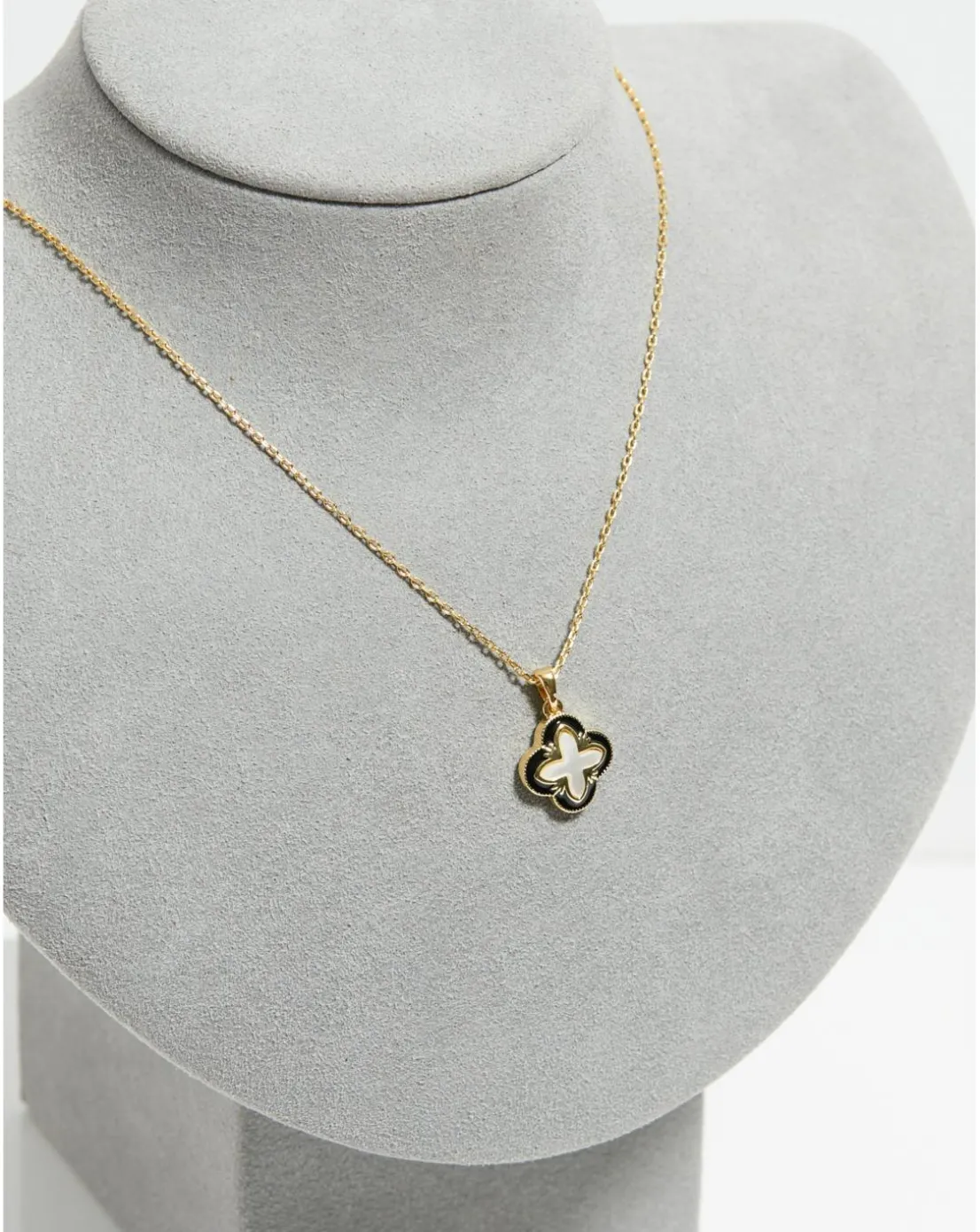 - Inicio Gold Plated Jet Enamel And Mother Of Pearl Clover Pendant – Gift Pouch