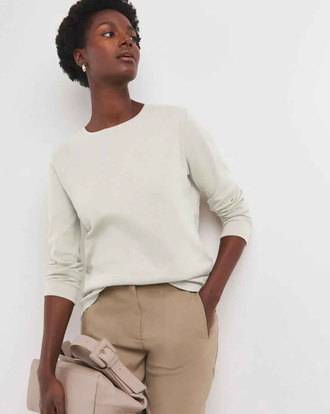 Our crew neck long sleeve t-shirt is a perfect layering piece for those colder months. Pair with jeans and flats for an everyday look.
