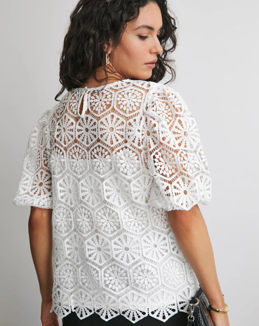 This delicate crochet top will become your go-to piece to elevate any outfit this summer. Pair with one of our Joanna Hope wide-leg trousers. Cut to a classic top shape, this top is a timeless piece and comes with a detachable cami.