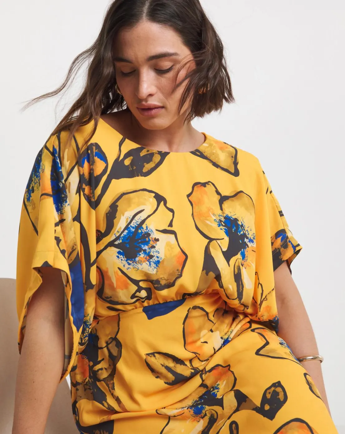 Stand out this season in our stunning Joanna Hope Yellow Floral Drape Sleeve Dress. Designed in a beautiful yellow floral print and cut to a sophisticated silhouette. This dress features drape sleeves and a high low hem to add detail.