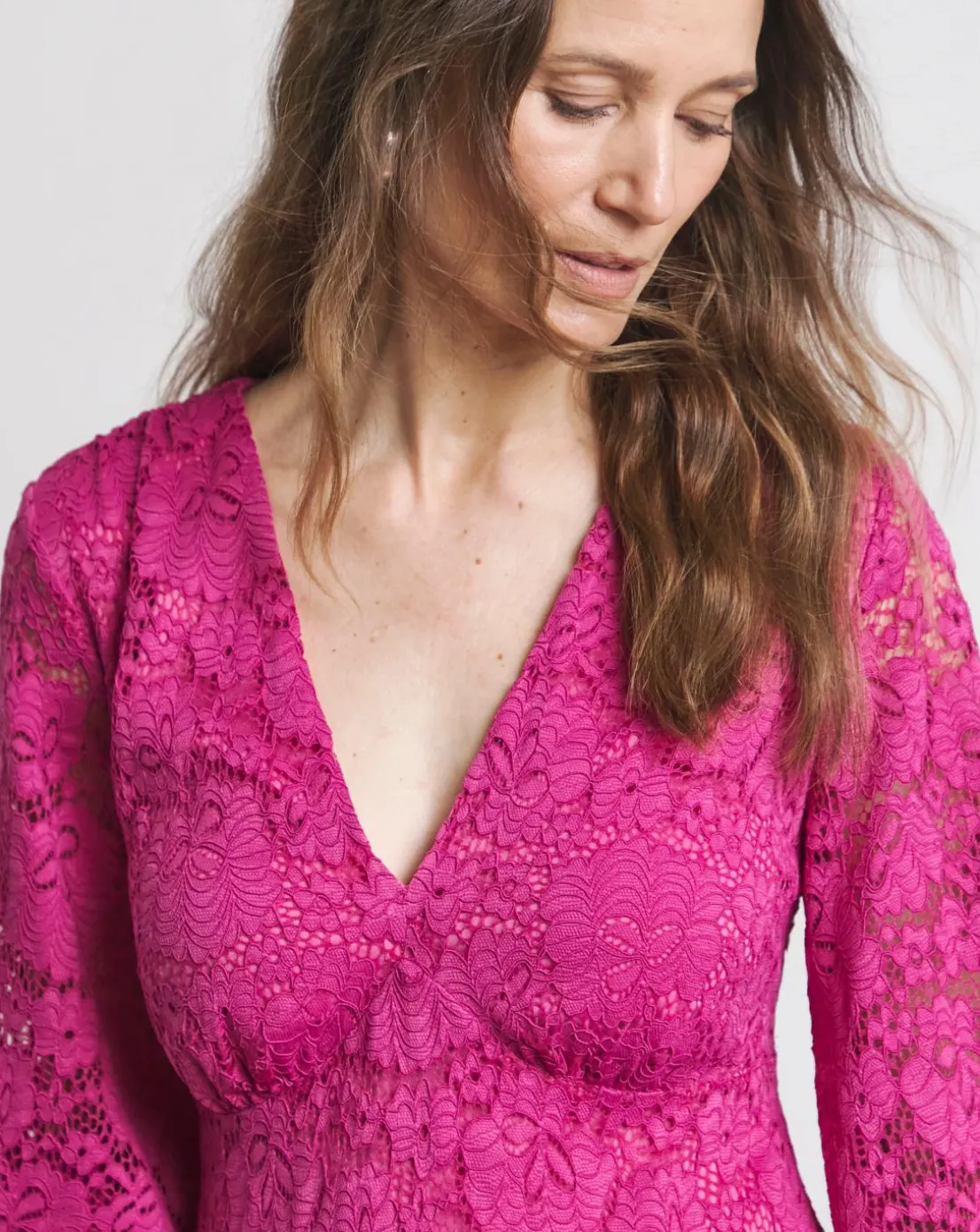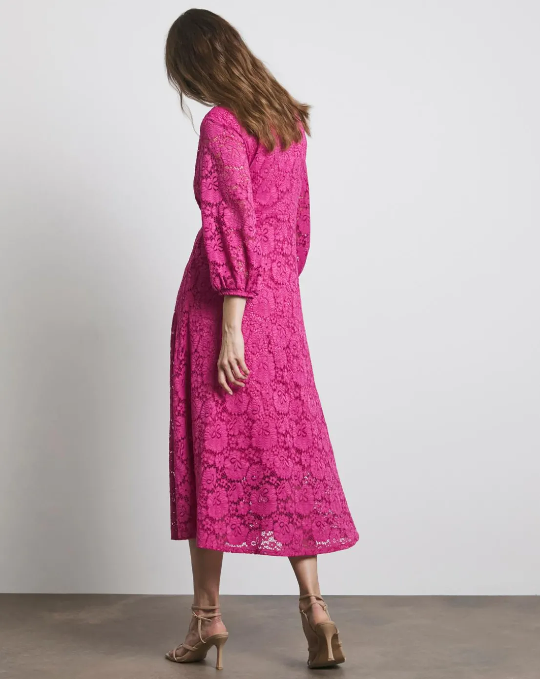 New to your wardrobe is our Joanna Hope lace midi dress. Perfect for a formal occasion such as Mother of the Bride or a wedding guest! This dress features an intricate lace pattern that flatters the silhouette and is made with comfort in mind.